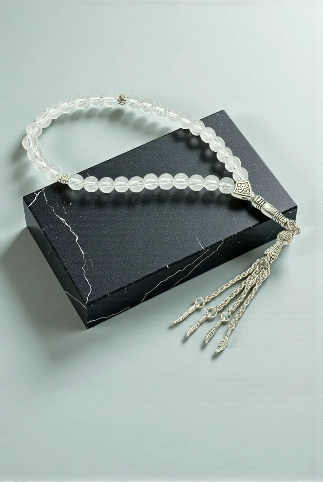 Dayanıklı misina yapısı sayesinde uzun süre deforme olmadan kullanılabilir. Her bir tespih, gümüş renk imameli ve zarif lale püskül detaylarıyla özenle hazırlanmıştır.