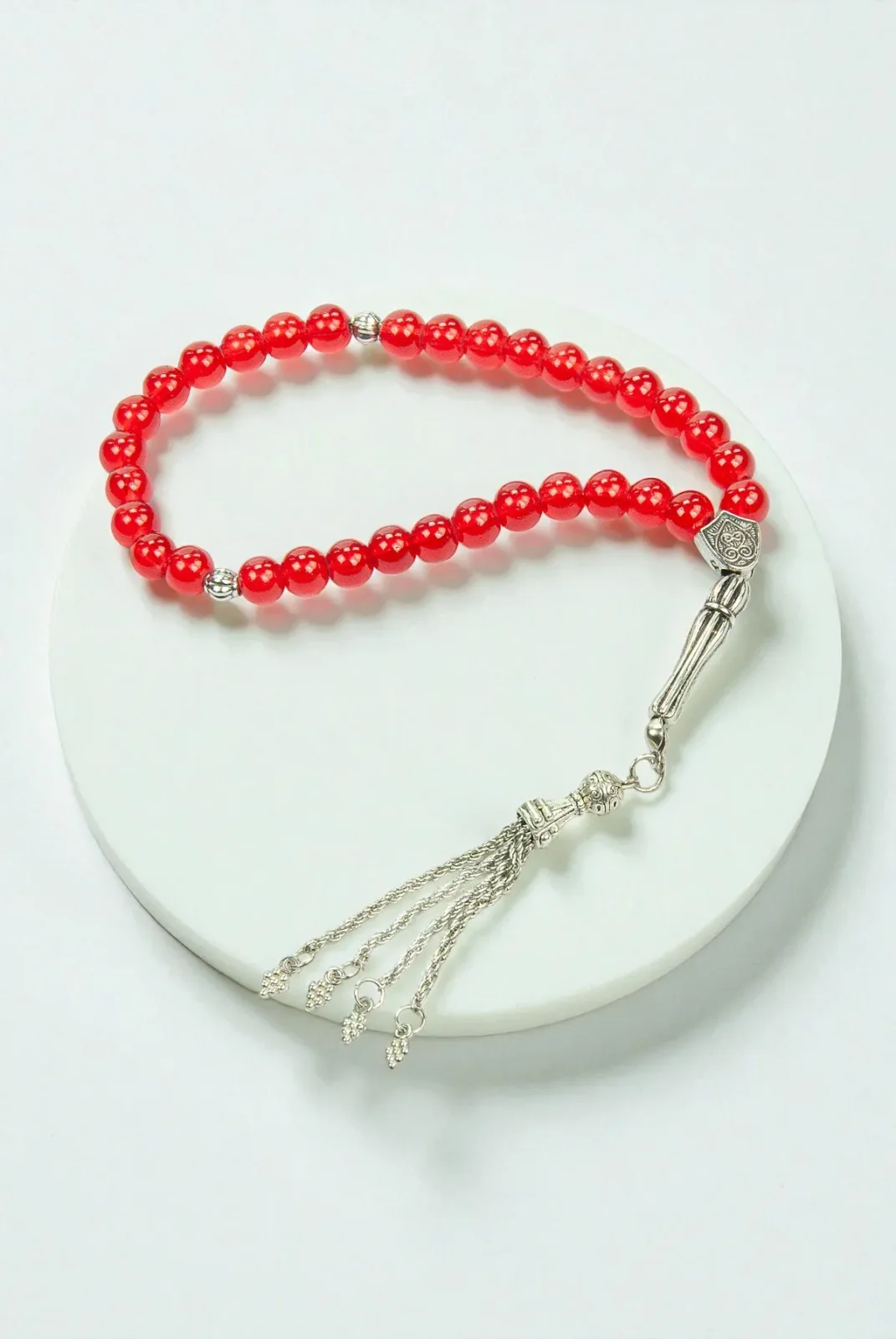Dayanıklı misina yapısı sayesinde uzun süre deforme olmadan kullanılabilir. Her bir tespih, gümüş renk imameli ve zarif lale püskül detaylarıyla özenle hazırlanmıştır.