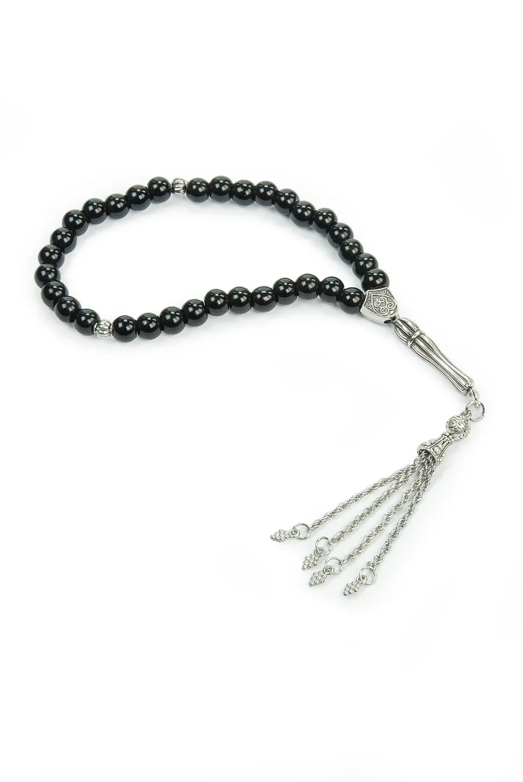 Dayanıklı misina yapısı sayesinde uzun süre deforme olmadan kullanılabilir. Her bir tespih, gümüş renk imameli ve zarif lale püskül detaylarıyla özenle hazırlanmıştır.