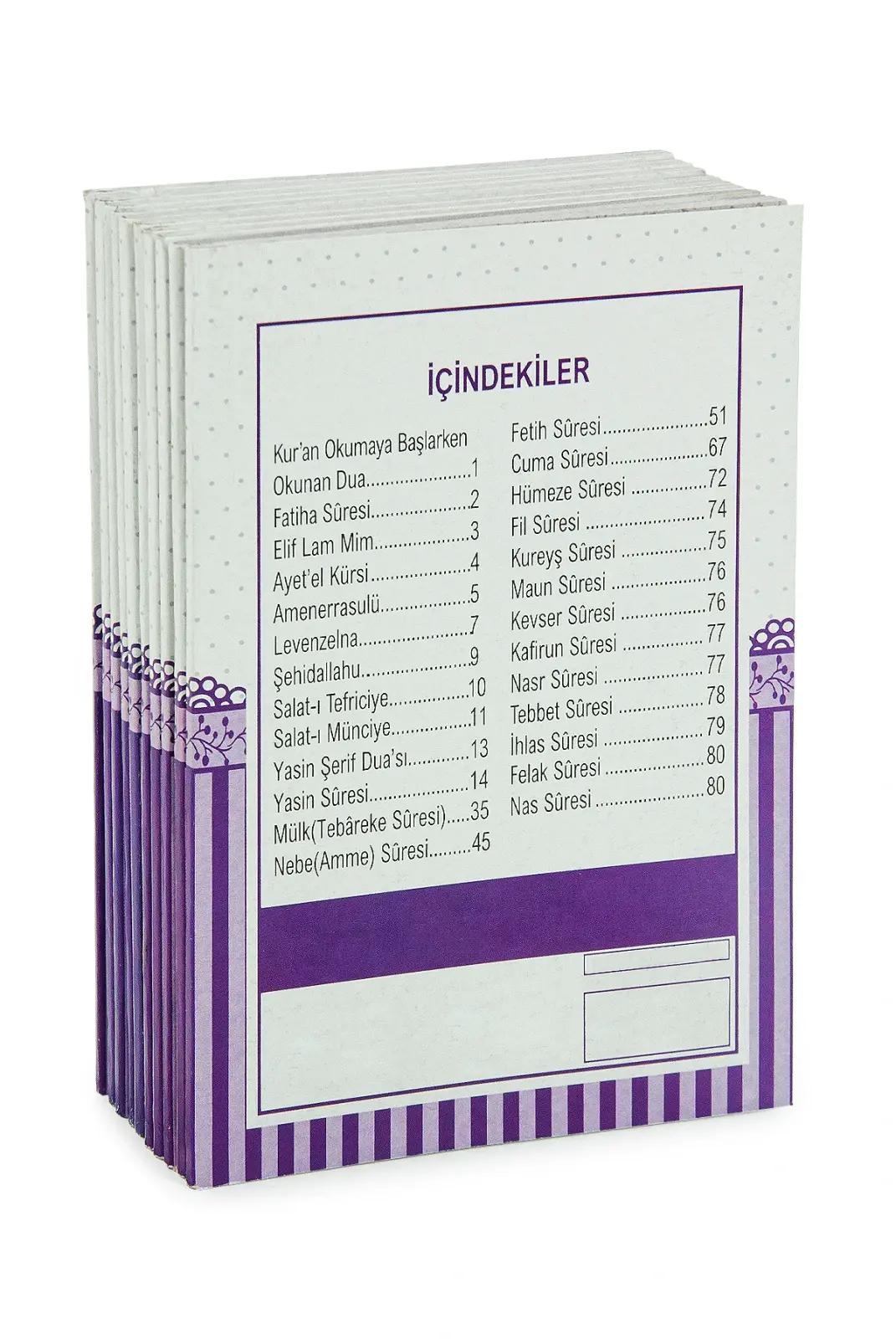 10 Adet Çanta Boy Yasin Kitabı 80 Sayfa Türkçe Mealli - Mor Renk