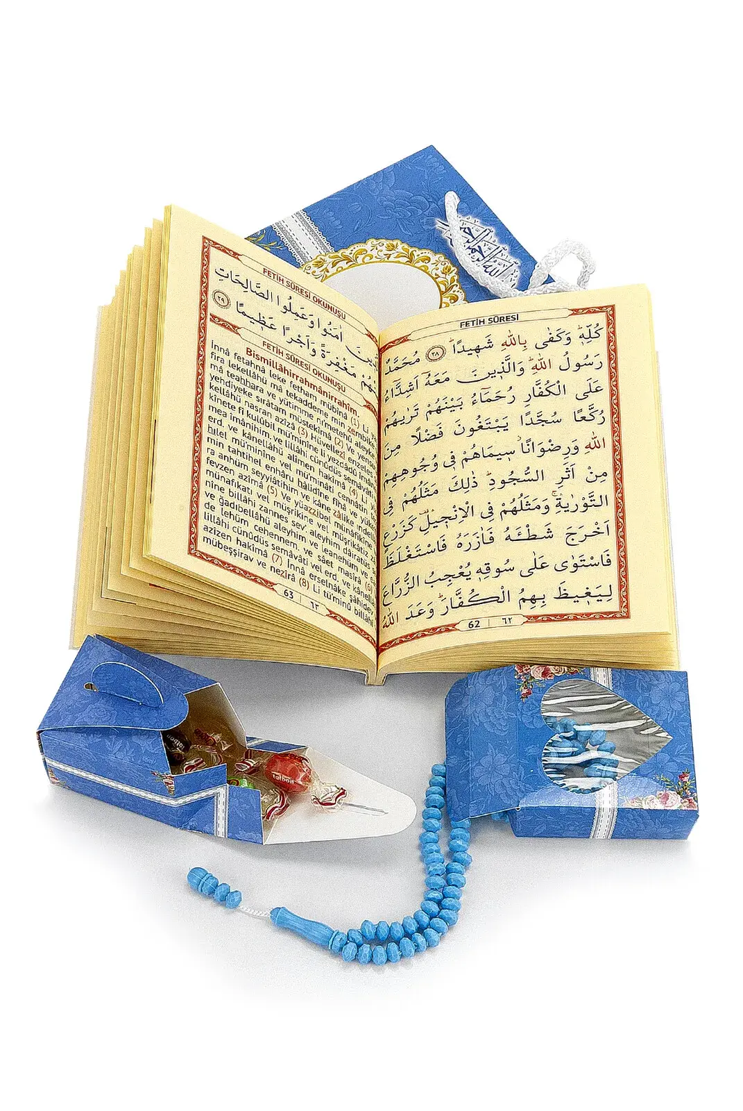 10 Adet Hediyelik 4'lü Mevlüt Seti İsme Özel Etiketli Çantalı, Tesbihli, Yasin Kitabı - Mavi