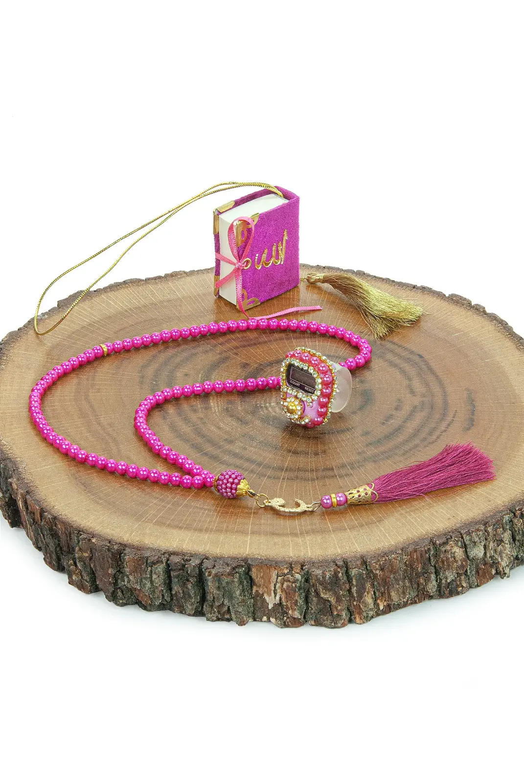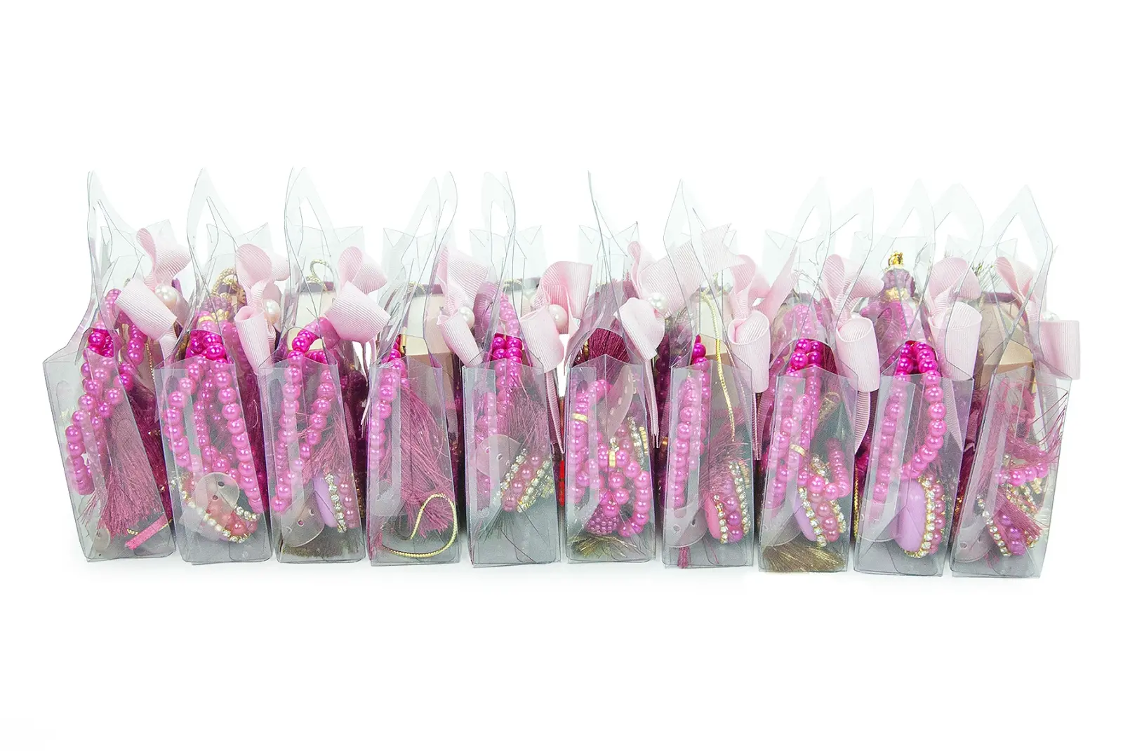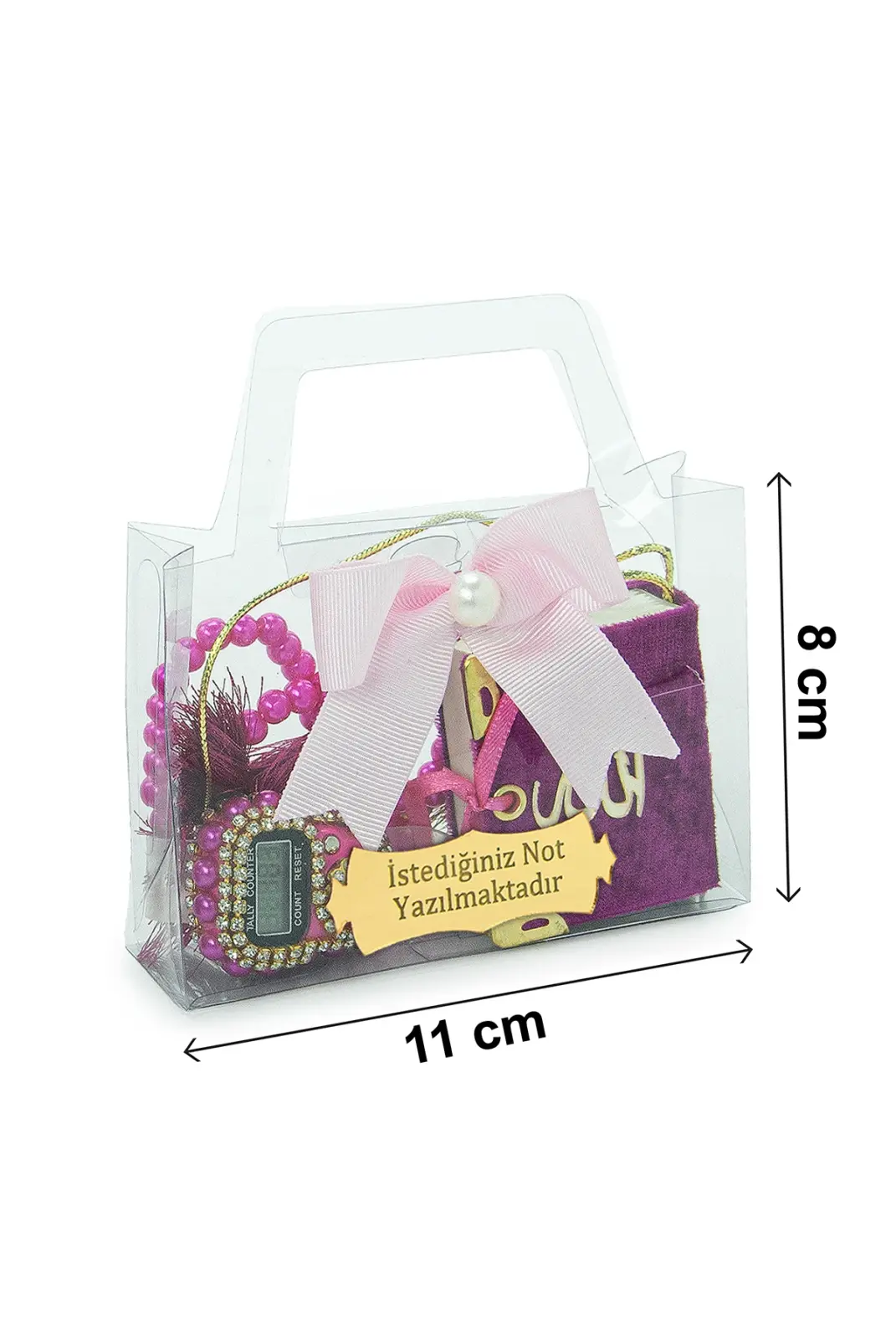 10 Adet İsme Özel Çantalı Mevlüt Hediyelik - Zikirmatik Tesbih Mini Kuranı Kerim Seti - Fuşya