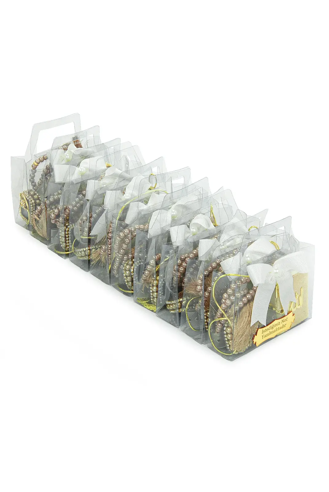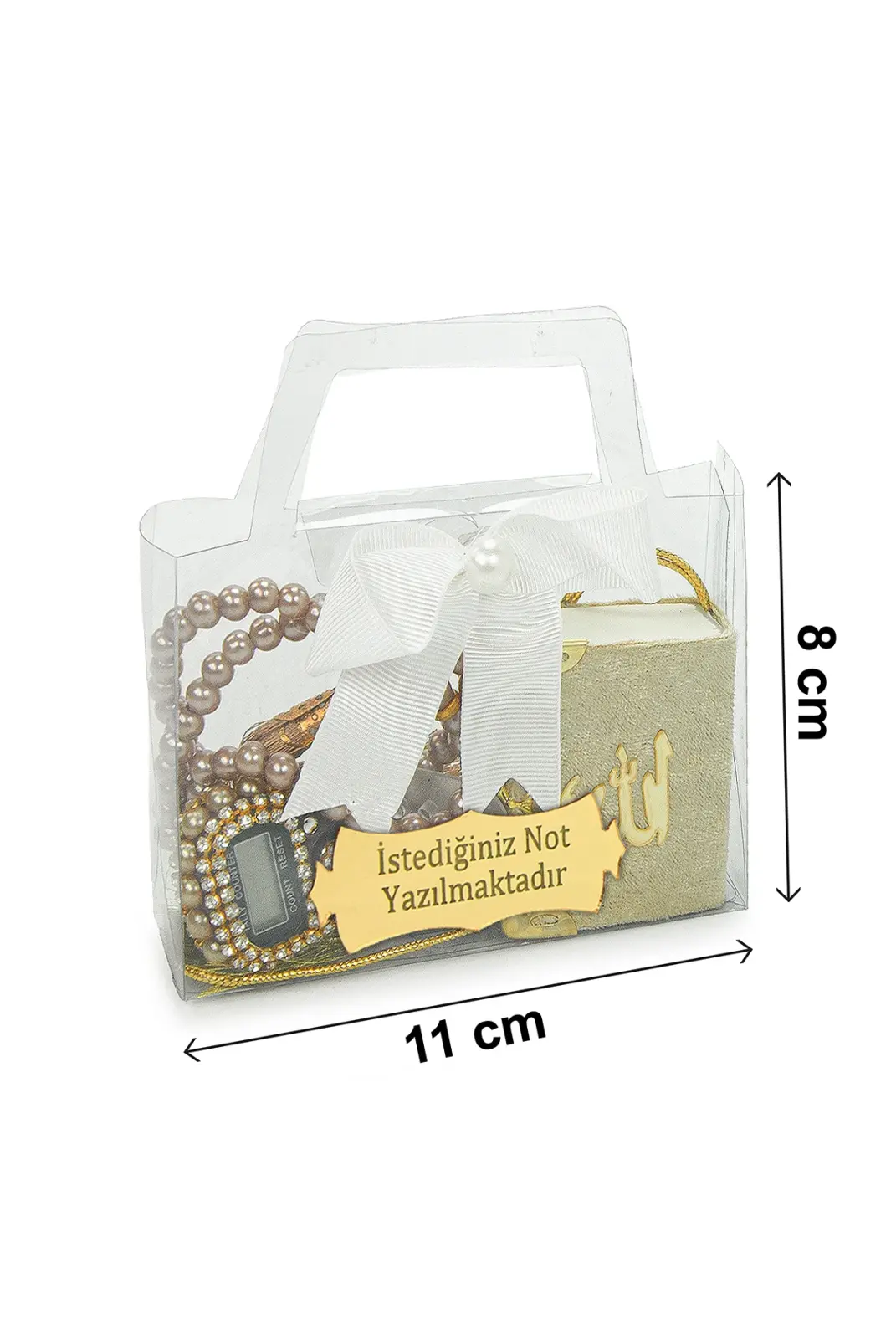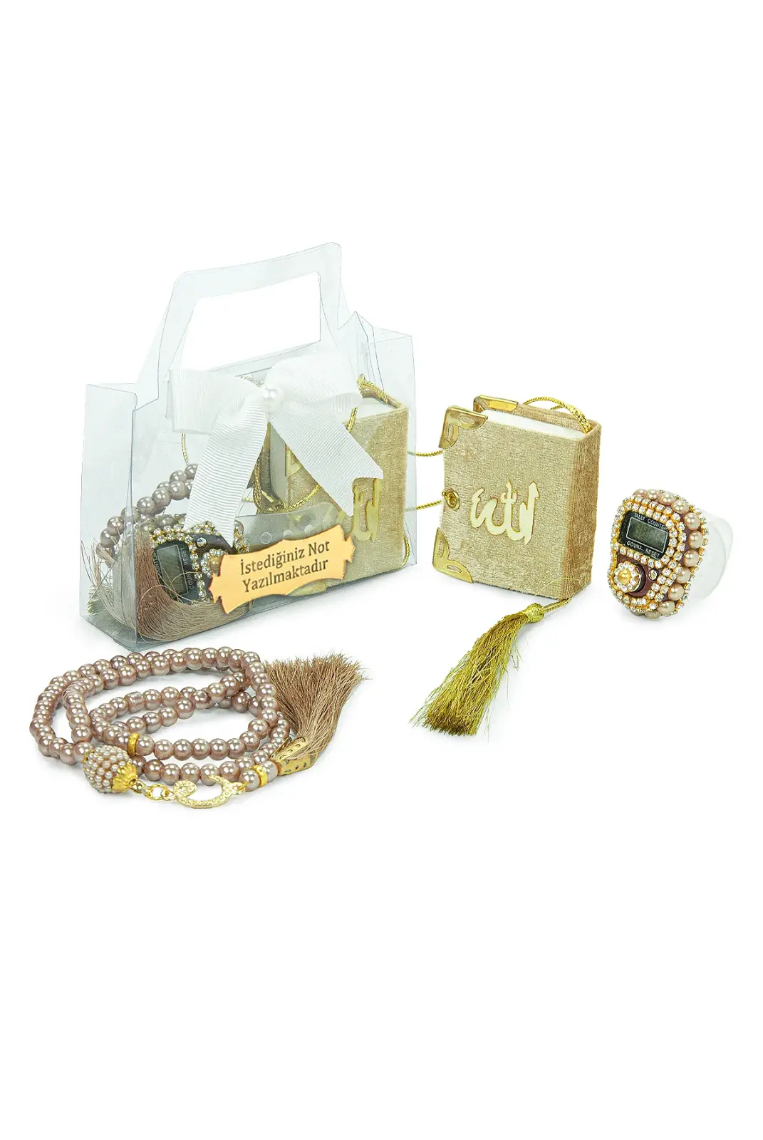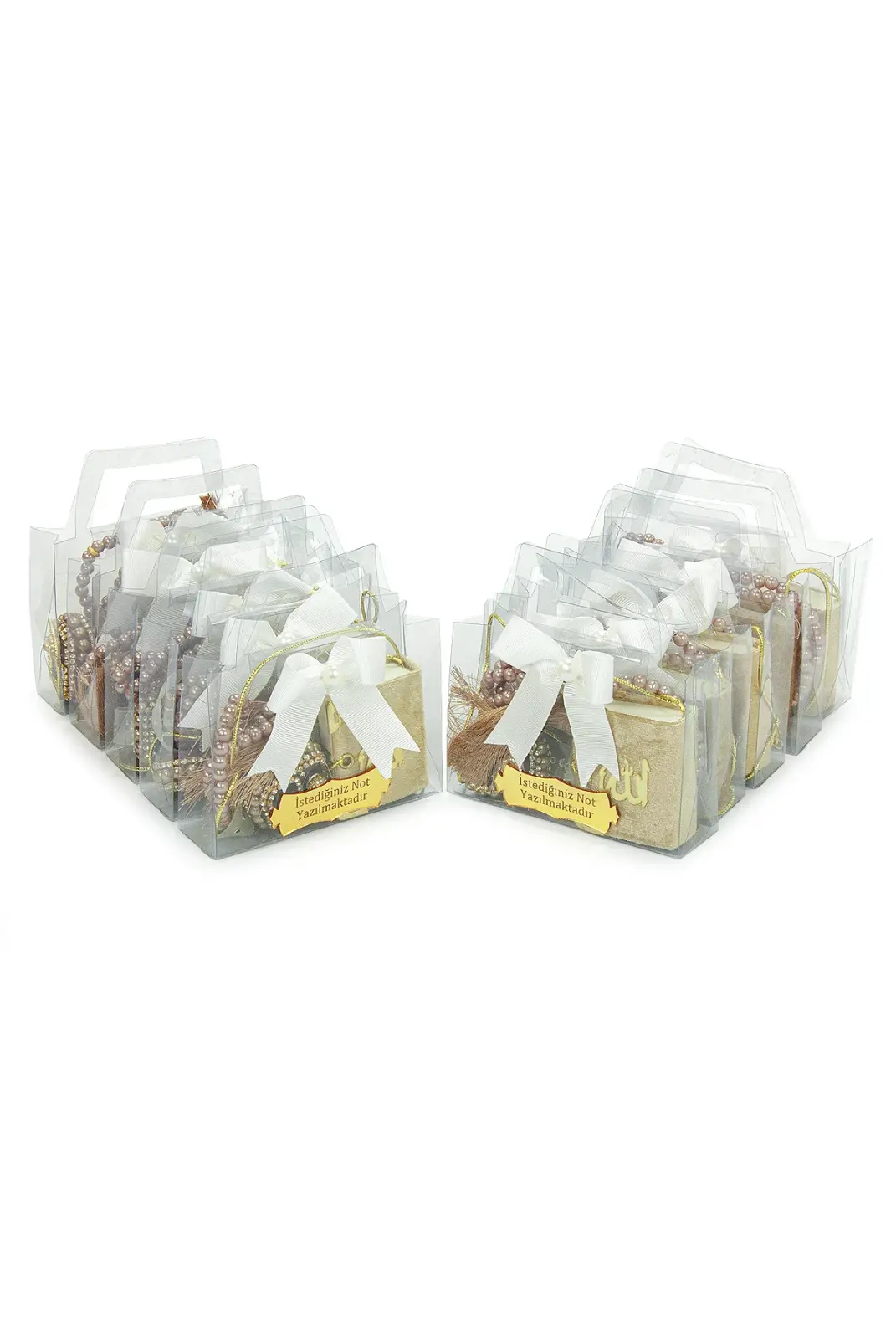 10 Adet İsme Özel Çantalı Mevlüt Hediyelik - Zikirmatik Tesbih Mini Kuranı Kerim Seti - Gold