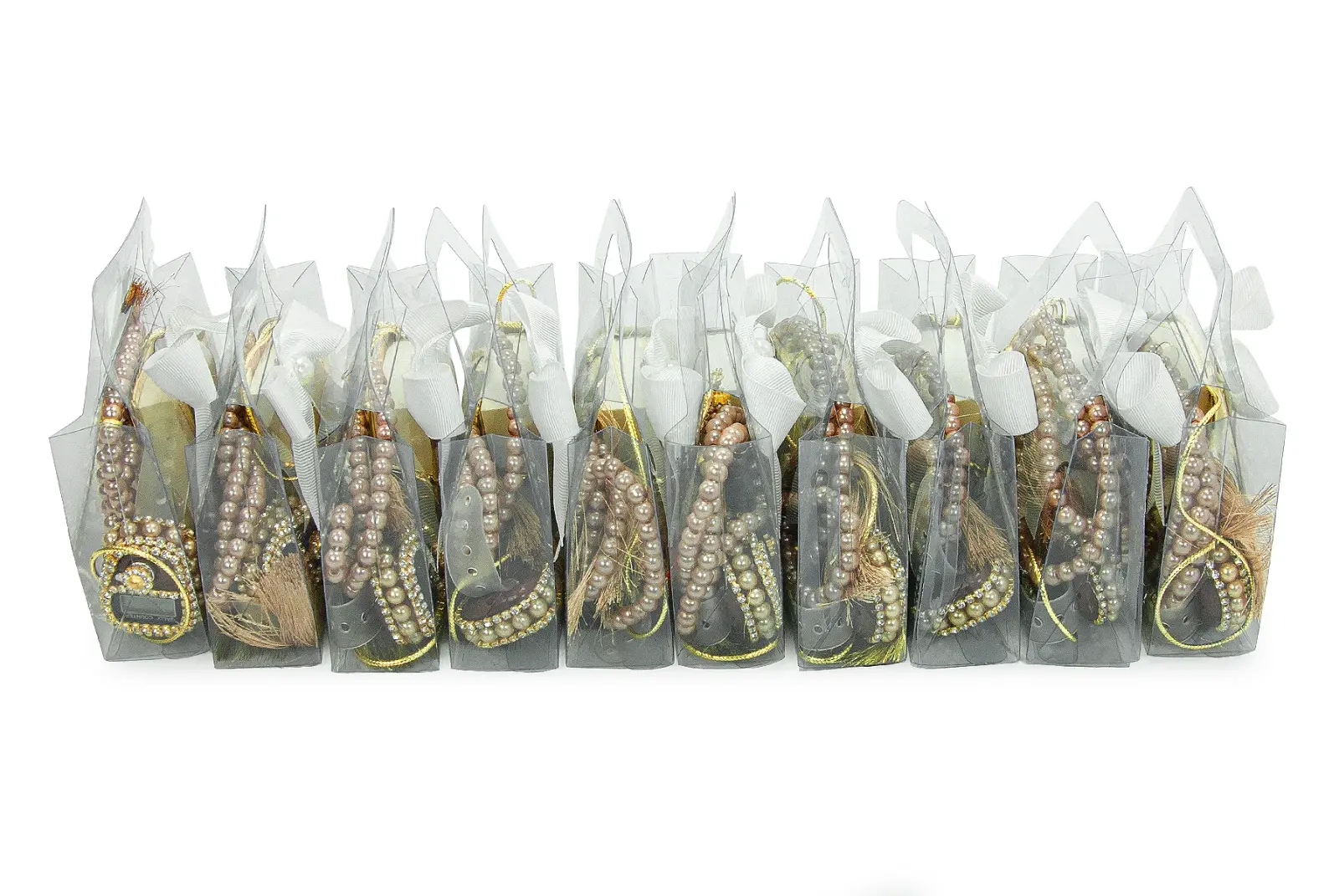 Özel günlerde misafirlerinize anlamlı ve şık bir hediye sunmak için hazırlanan 10 Adet İsme Özel Çantalı Mevlüt Hediyelik Seti, zarif tasarımı ve hazır sunumuyla ideal bir seçenektir. Her bir sette Mini Kuran-ı Kerim, zikirmatik, tesbih ve süslemeli hediye çantası bulunur. Üzerindeki pleksi plakaya dilediğiniz isim veya kısa bir not eklenebilir.