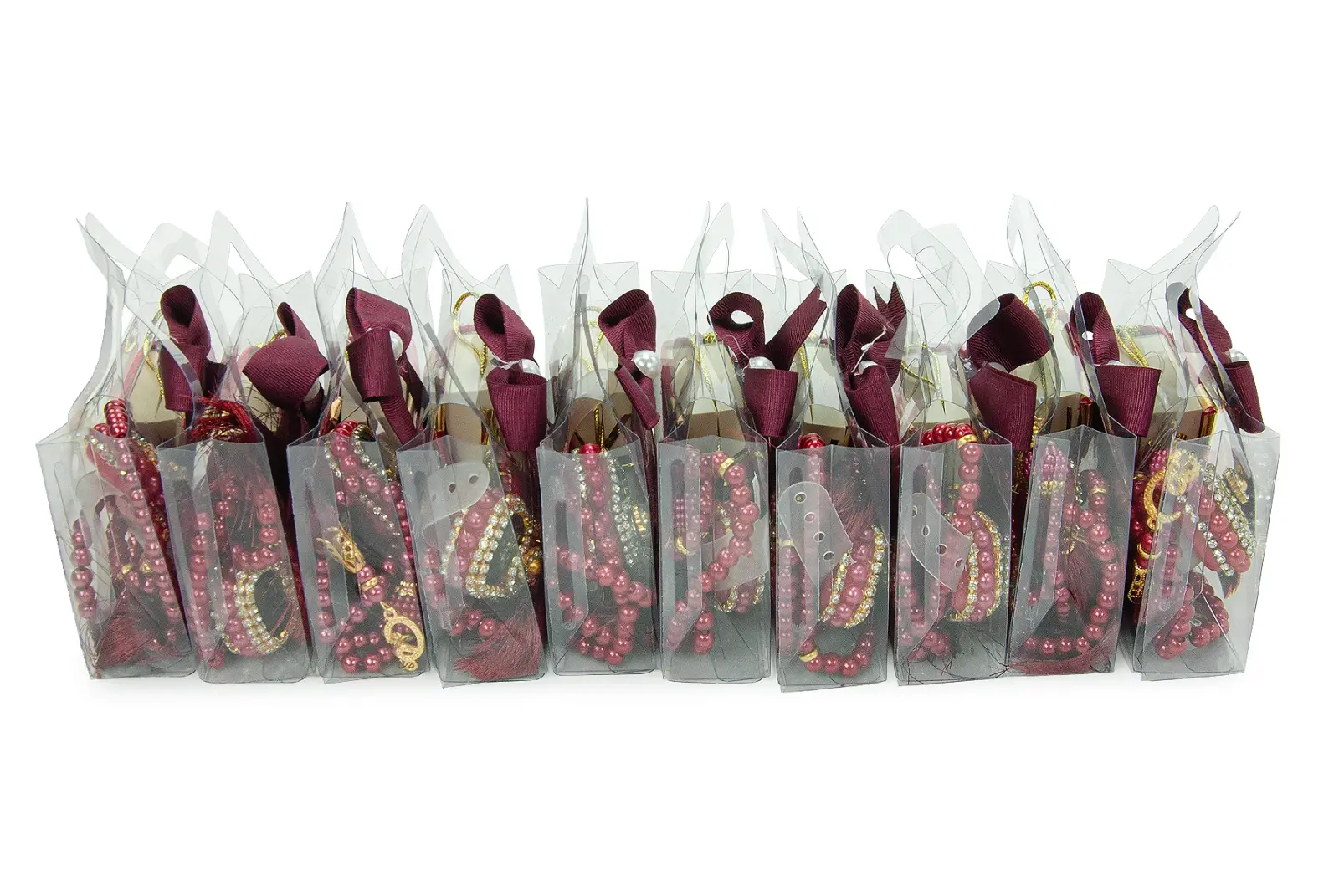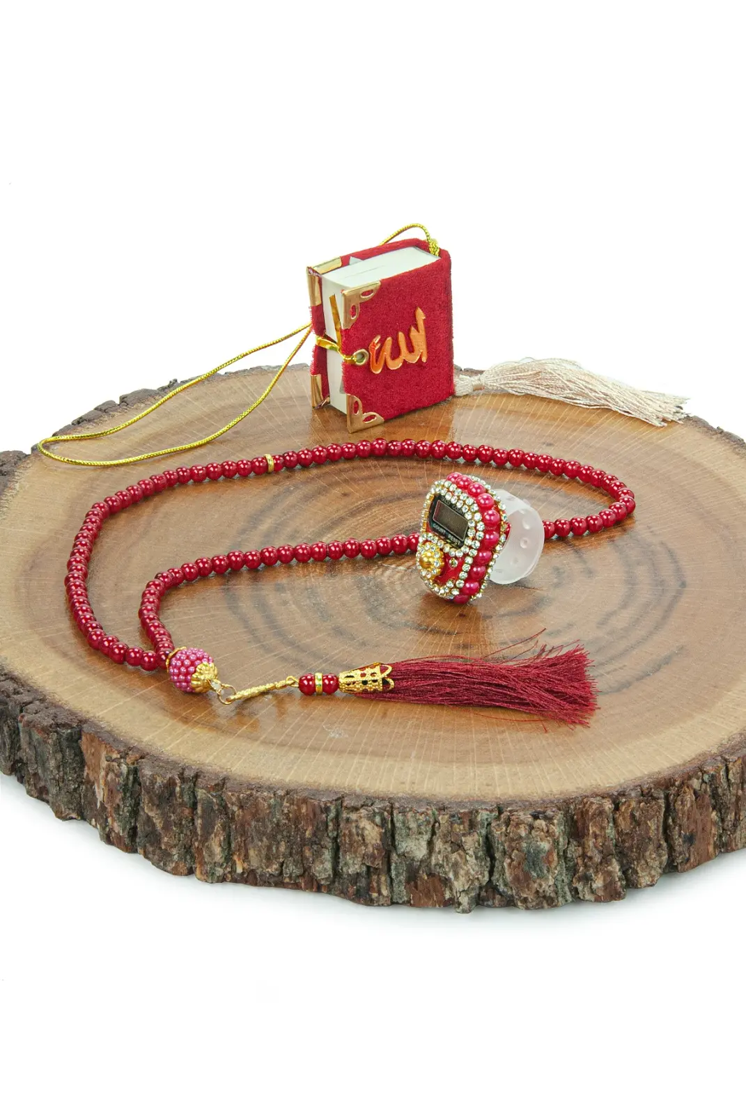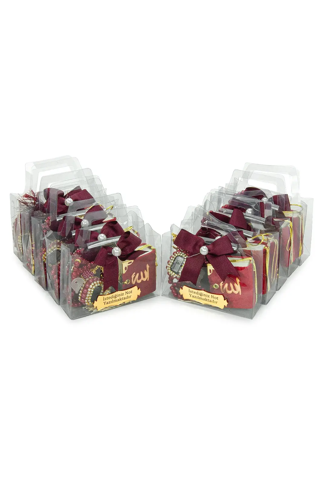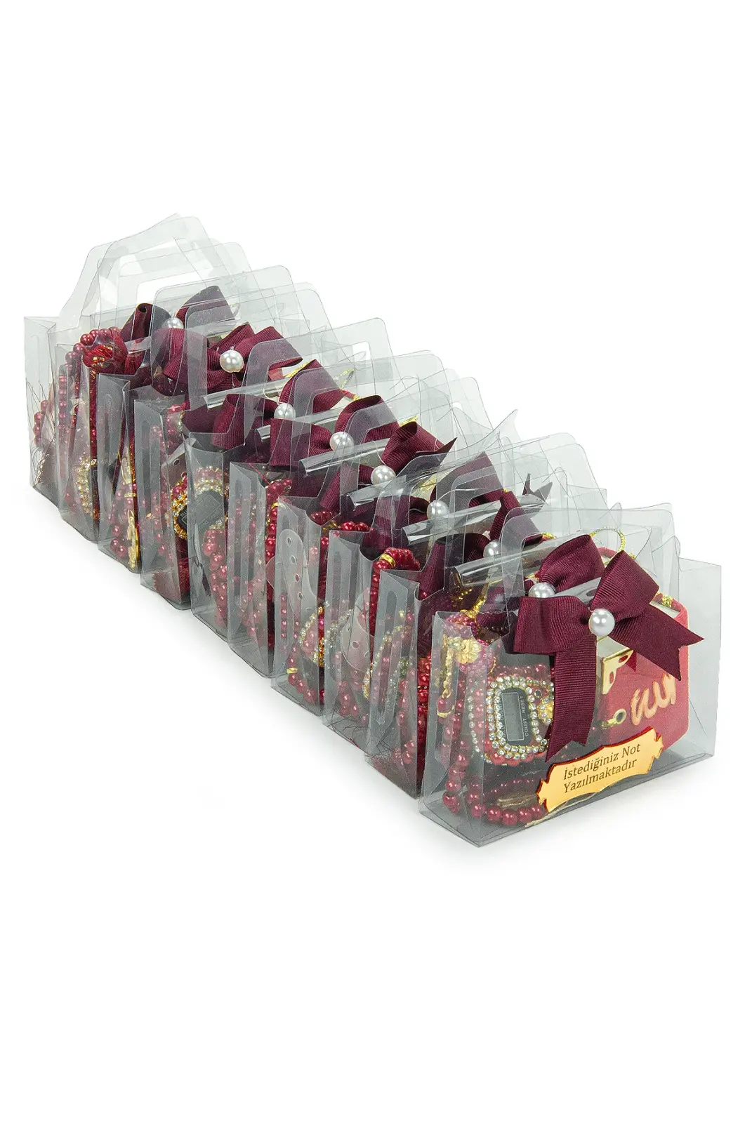 10 Adet İsme Özel Çantalı Mevlüt Hediyelik - Zikirmatik Tesbih Mini Kuranı Kerim Seti - Kırmızı