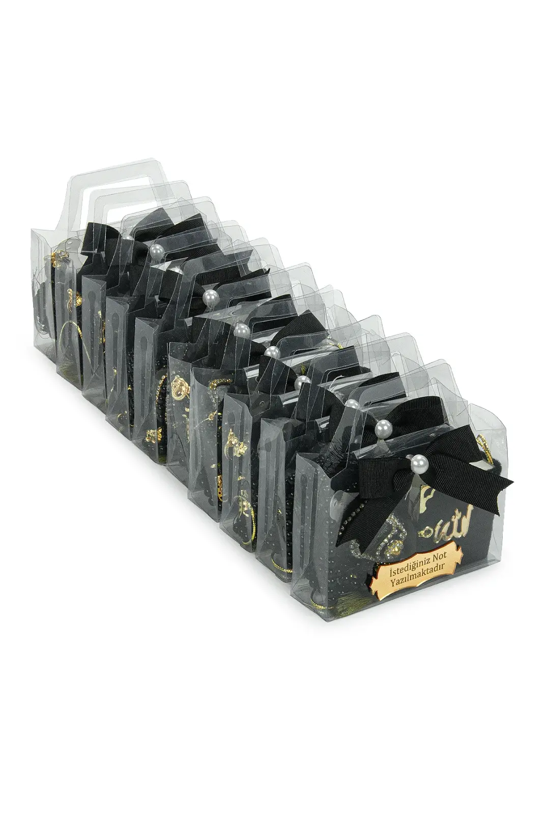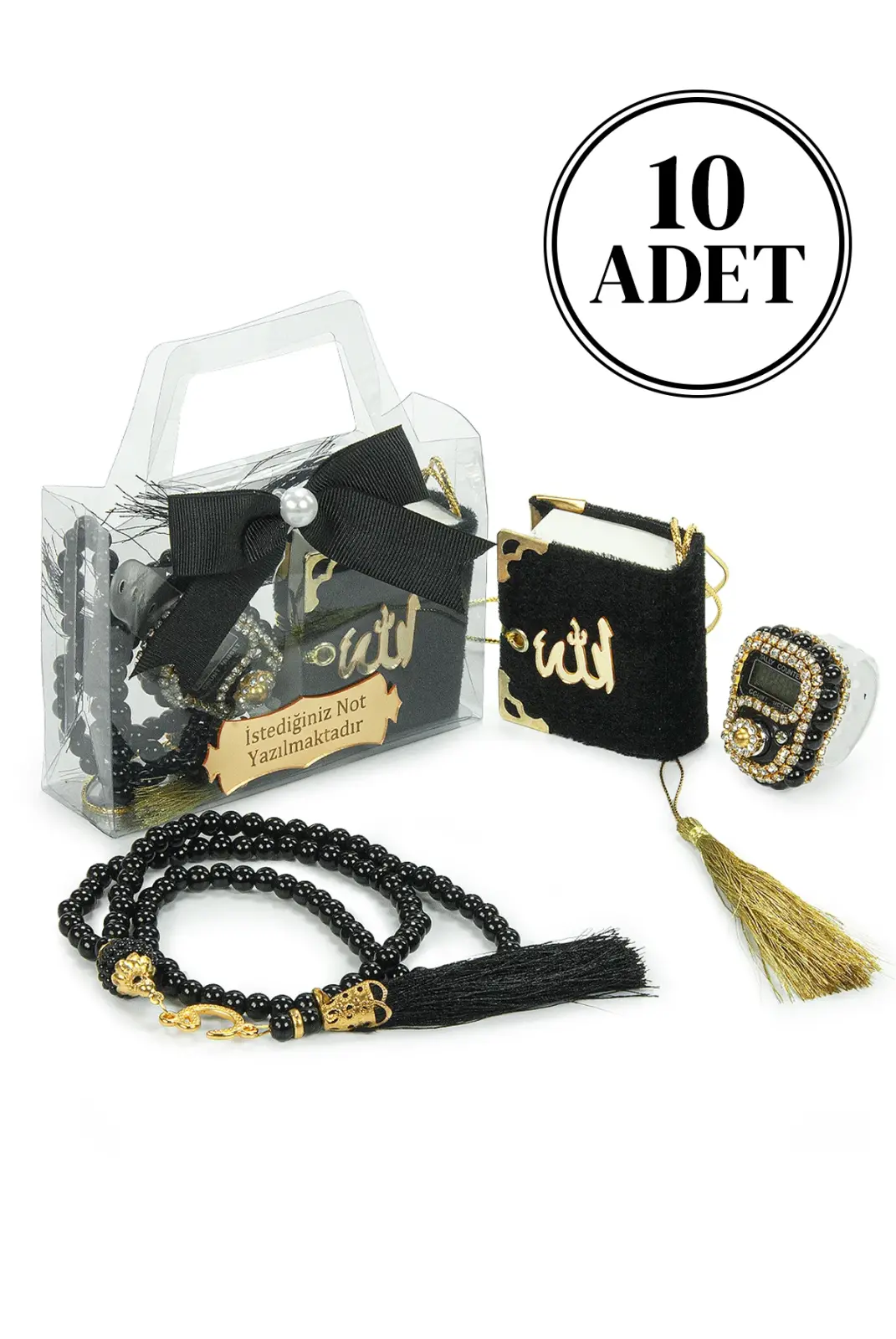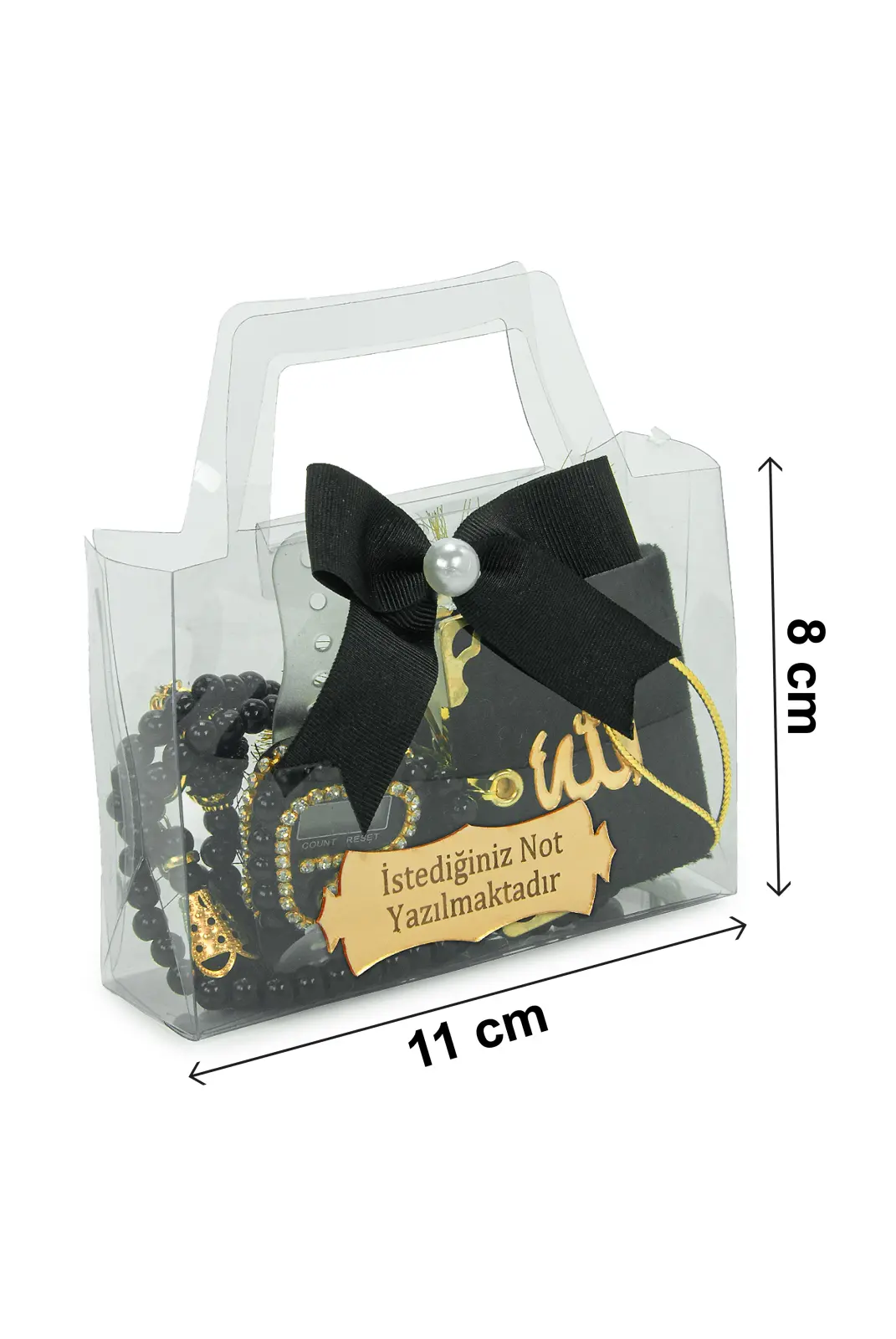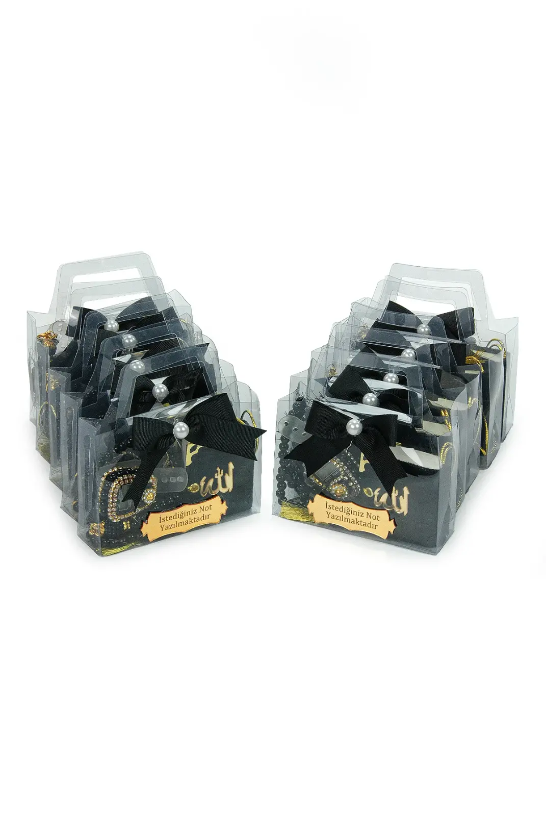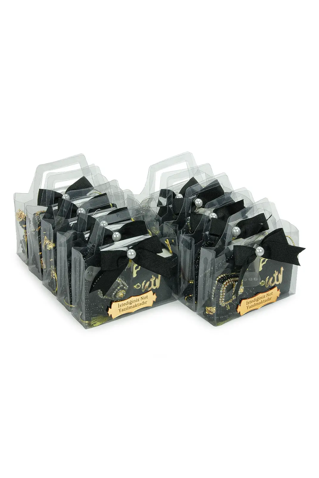Özel günlerde misafirlerinize anlamlı ve şık bir hediye sunmak için hazırlanan 10 Adet İsme Özel Çantalı Mevlüt Hediyelik Seti, zarif tasarımı ve hazır sunumuyla ideal bir seçenektir. Her bir sette Mini Kuran-ı Kerim, zikirmatik, tesbih ve süslemeli hediye çantası bulunur. Üzerindeki pleksi plakaya dilediğiniz isim veya kısa bir not eklenebilir.