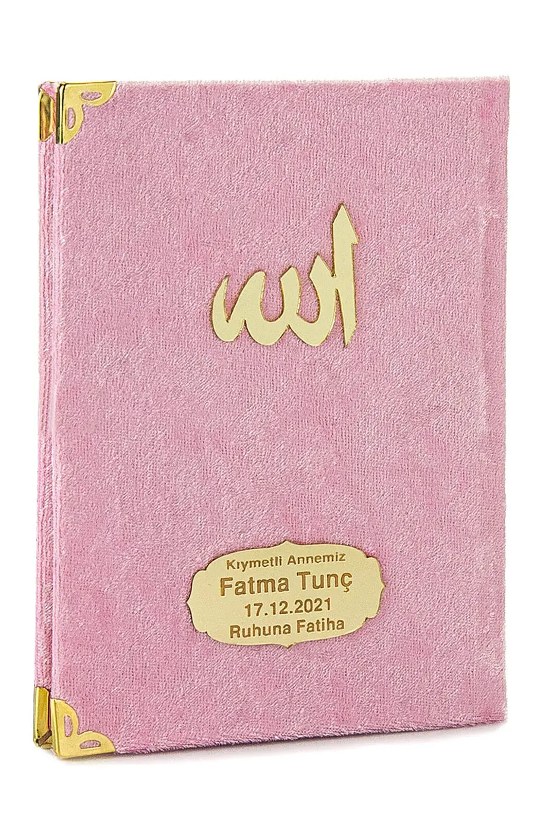 10 Adet İsme Özel Mevlüt Hediyesi Kadife Kaplı Yasin Kitabı 80 Sayfa Pembe