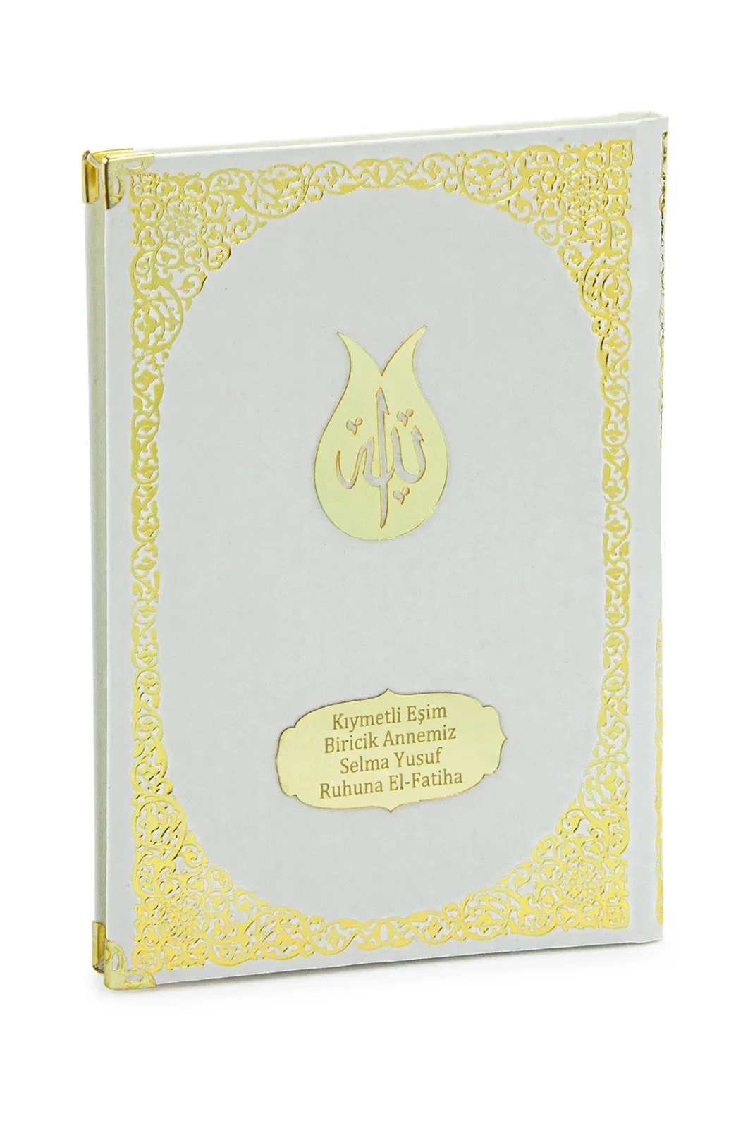 10 Adet İsme Özel Yaldızlı Deri Ciltli Yasin Kitabı Ayetel Kürsi Desenli Mevlüt Hediyesi Orta Boy 176 Sayfa - Beyaz
