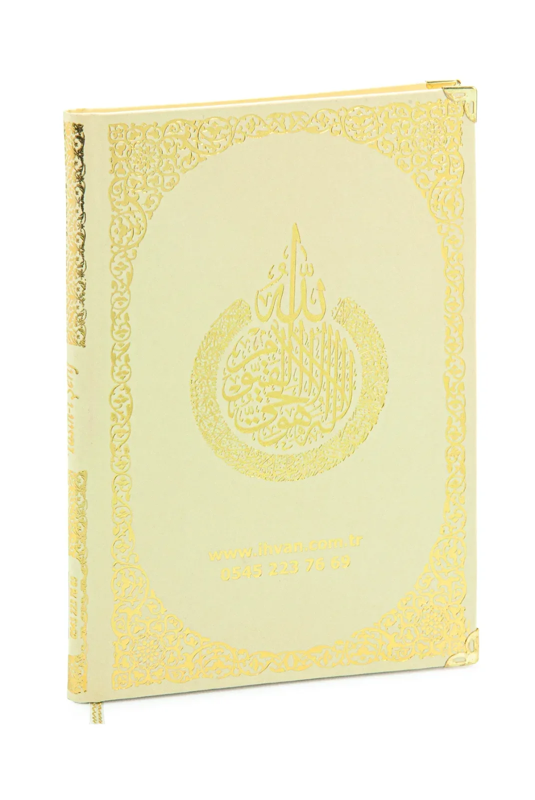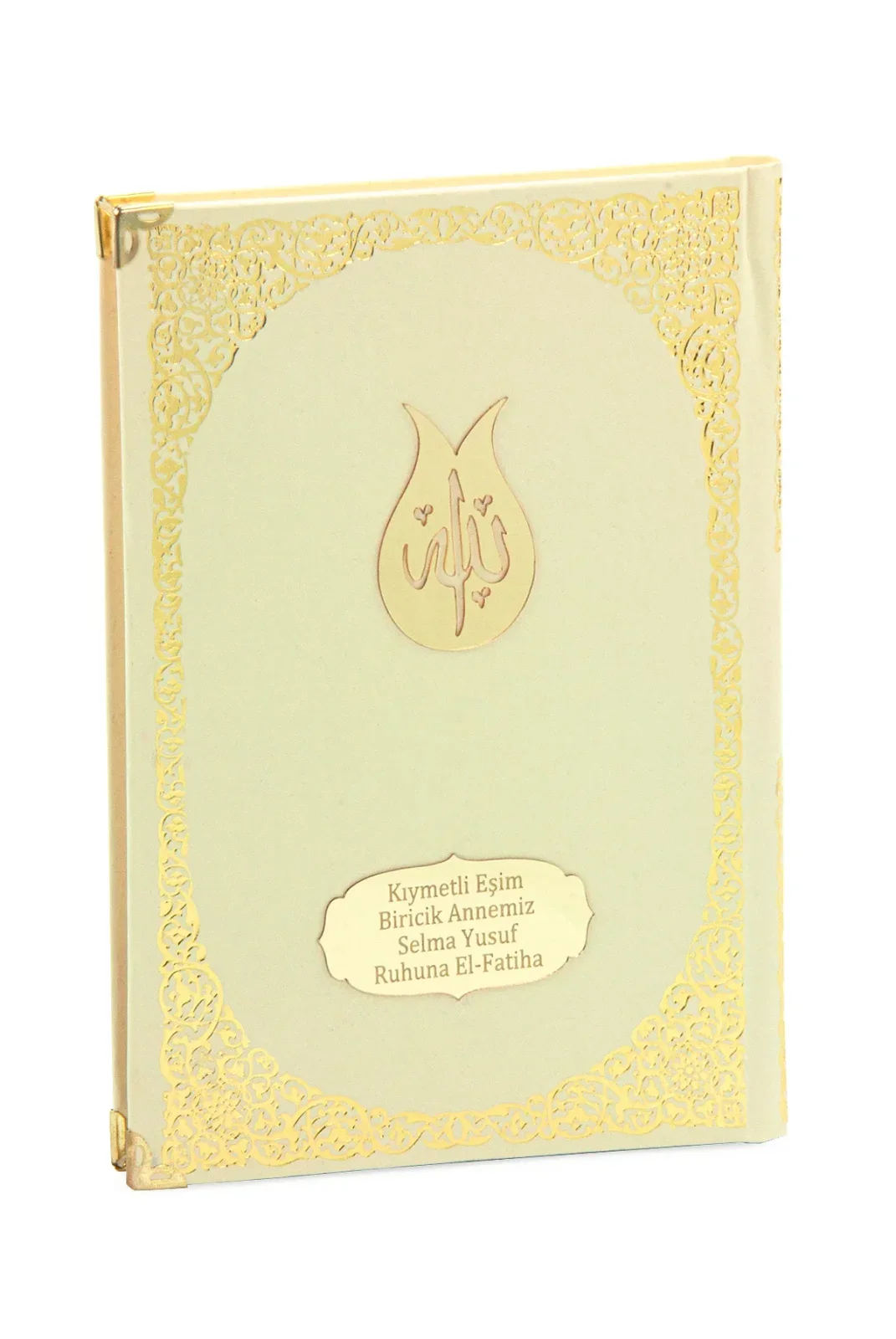 10 Adet İsme Özel Yaldızlı Deri Ciltli Yasin Kitabı Ayetel Kürsi Desenli Mevlüt Hediyesi Orta Boy 176 Sayfa - Krem