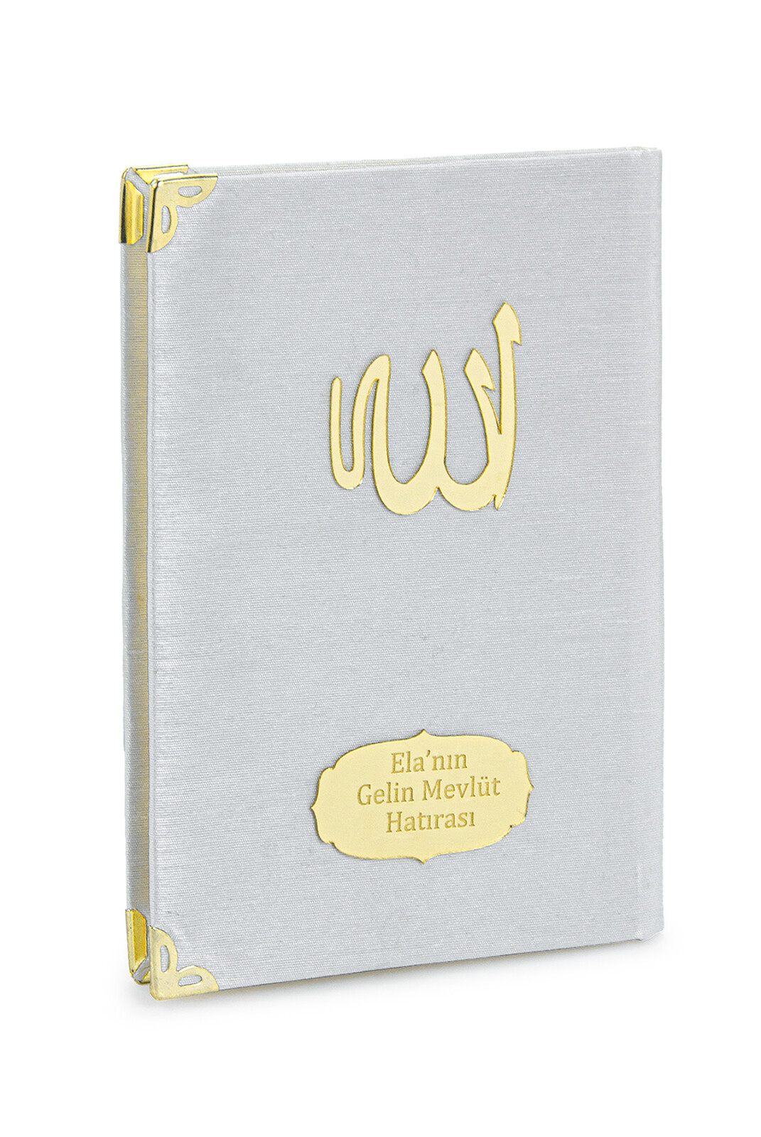 10 ADET - Şantuk Kumaş Kaplı Yasin Kitabı - Çanta Boy - İsme Özel Plakalı - Beyaz