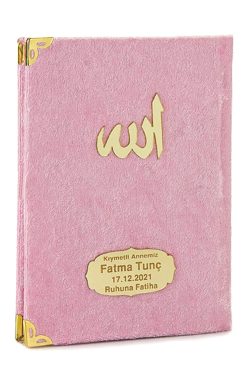 10 Pieces Velvet Covered Yasin Book - Bag Size - Name-Specific Plate - Rosary - Sachet - Pink Color - Mevlüt Gift - 80 Pages