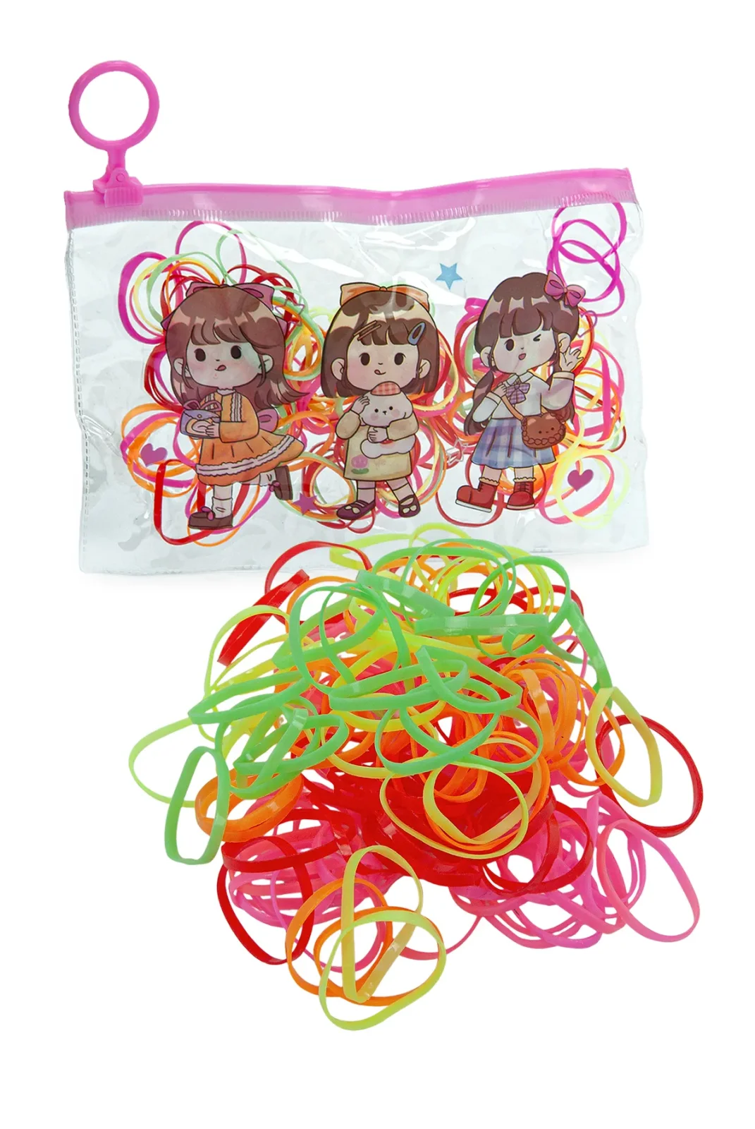 Esnek ve yumuşak yapısı sayesinde saçları sıkmadan toplar, çekme veya koparma yapmaz. Günlük kullanımda okulda, evde veya oyun sırasında rahatlıkla kullanılabilir. Şeffaf ve fermuarlı çantası sayesinde hem düzenli saklama hem de kolay taşıma imkânı sunar.