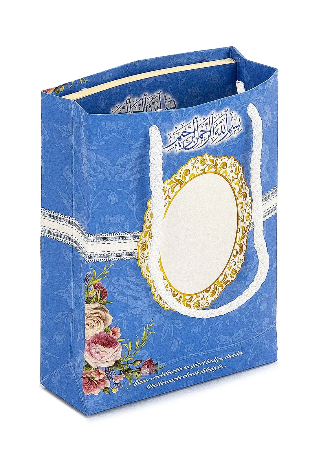 20 Adet Hediyelik 4'lü Mevlüt Seti İsme Özel Etiketli Çantalı, Tesbihli, Yasin Kitabı - Mavi