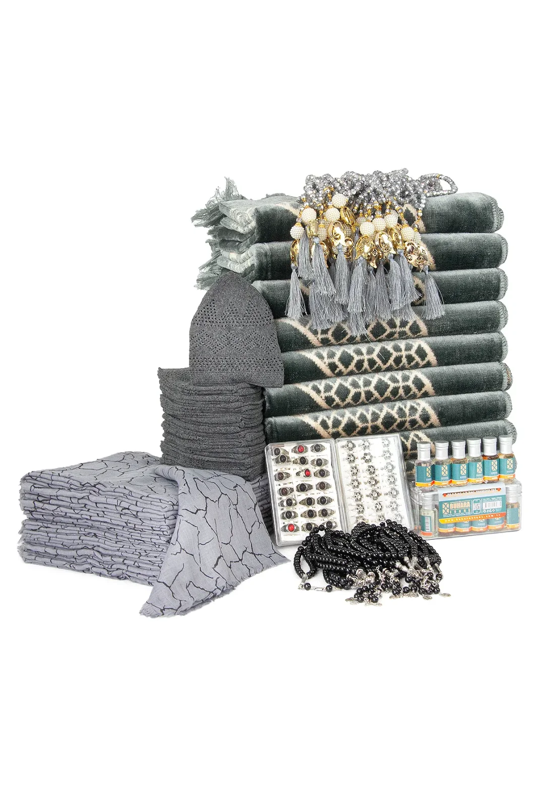 Set içerisinde yer alan tesbihler, takke, esanslar ve özel yüzükler; manevi değeri yüksek, kullanışlı ve uzun ömürlü ürünlerden oluşur. Mevlitlerde, özel günlerde ya da umre dönüşlerinde toplu hediye olarak ideal bir tercihtir.