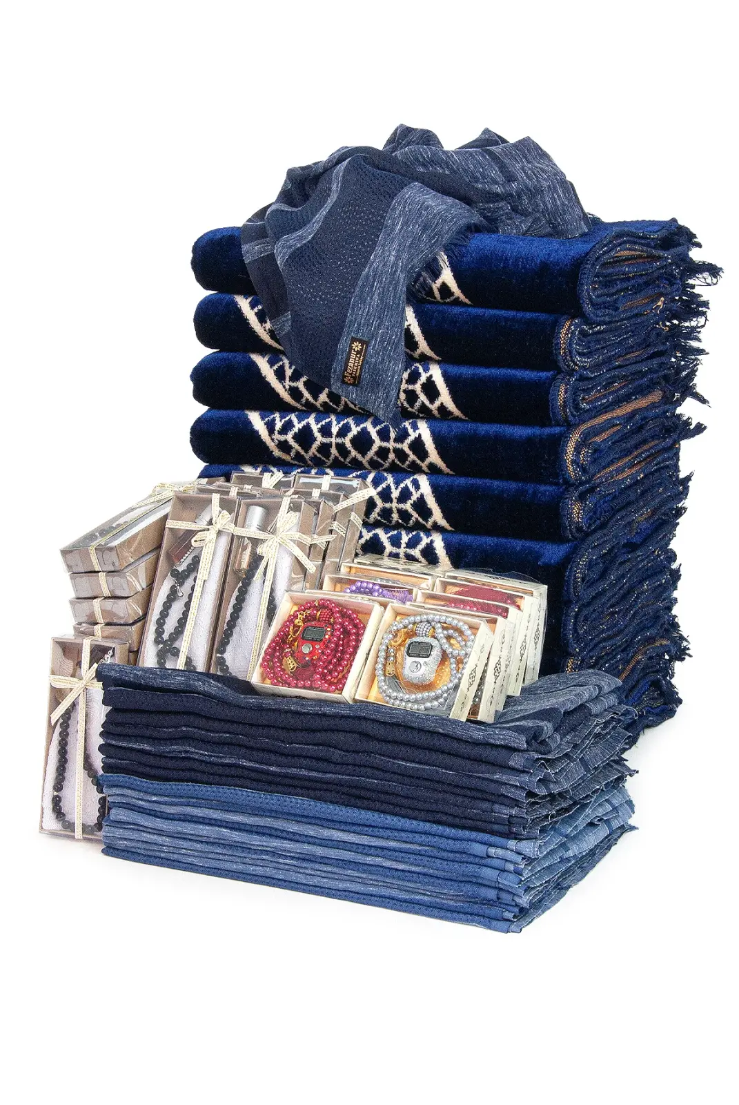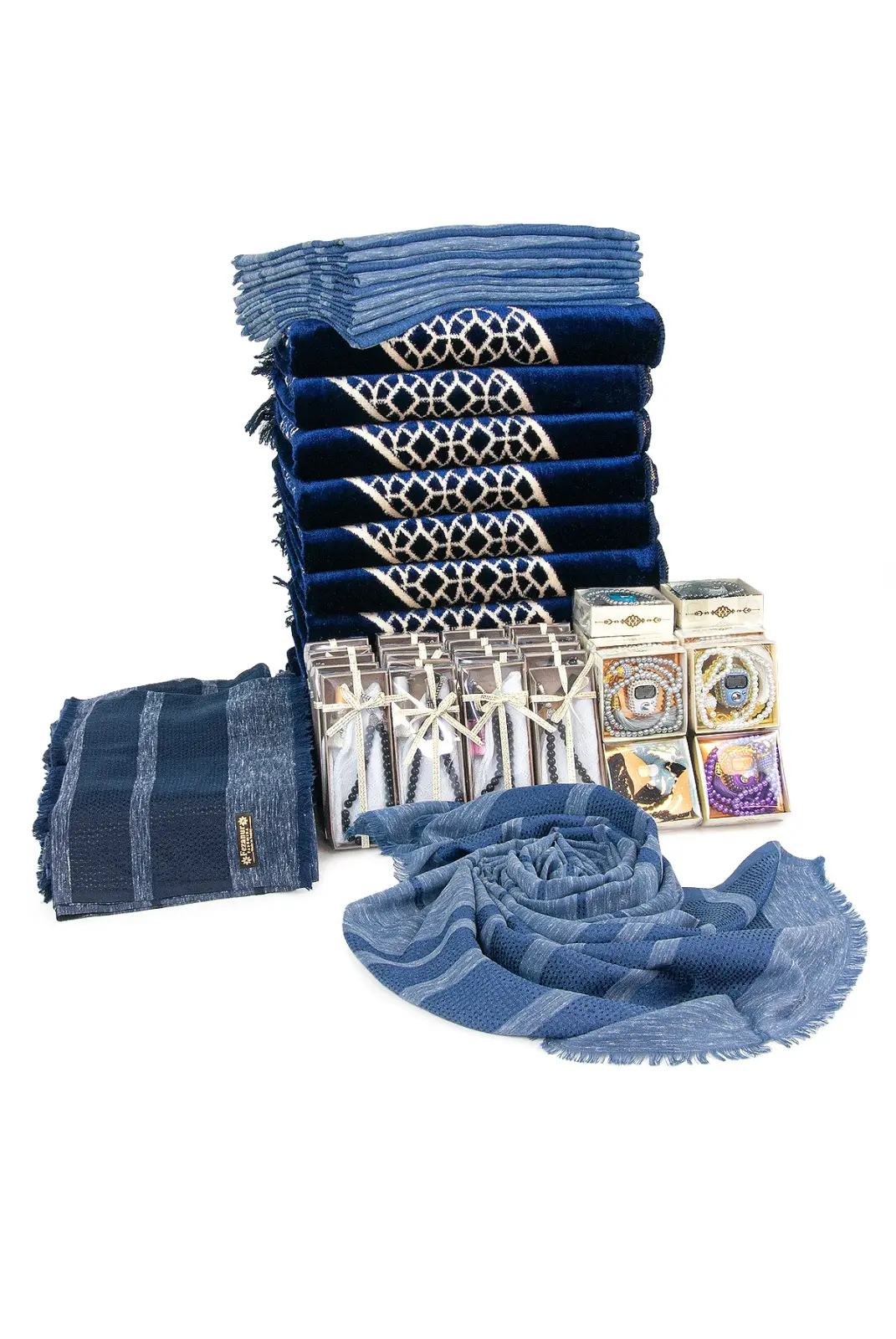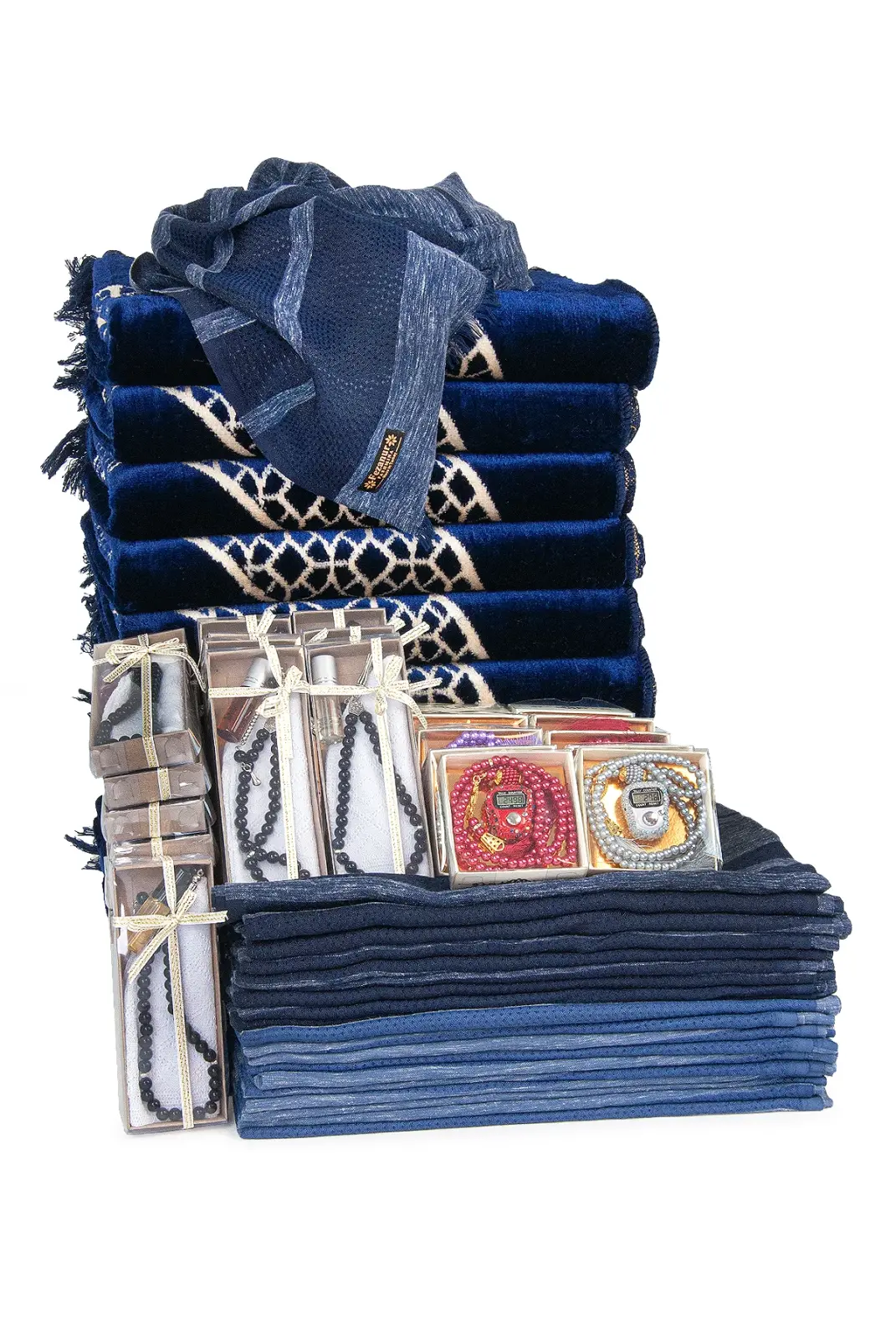 20 Kişilik Hac ve Umre Hediyelik Kadife Seccade Seti – Lacivert