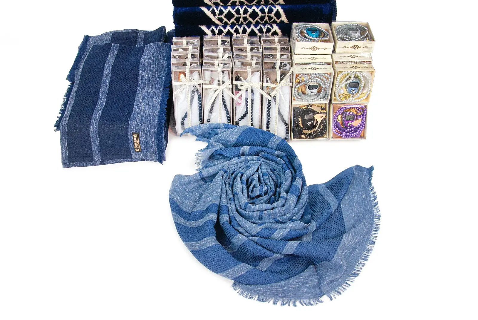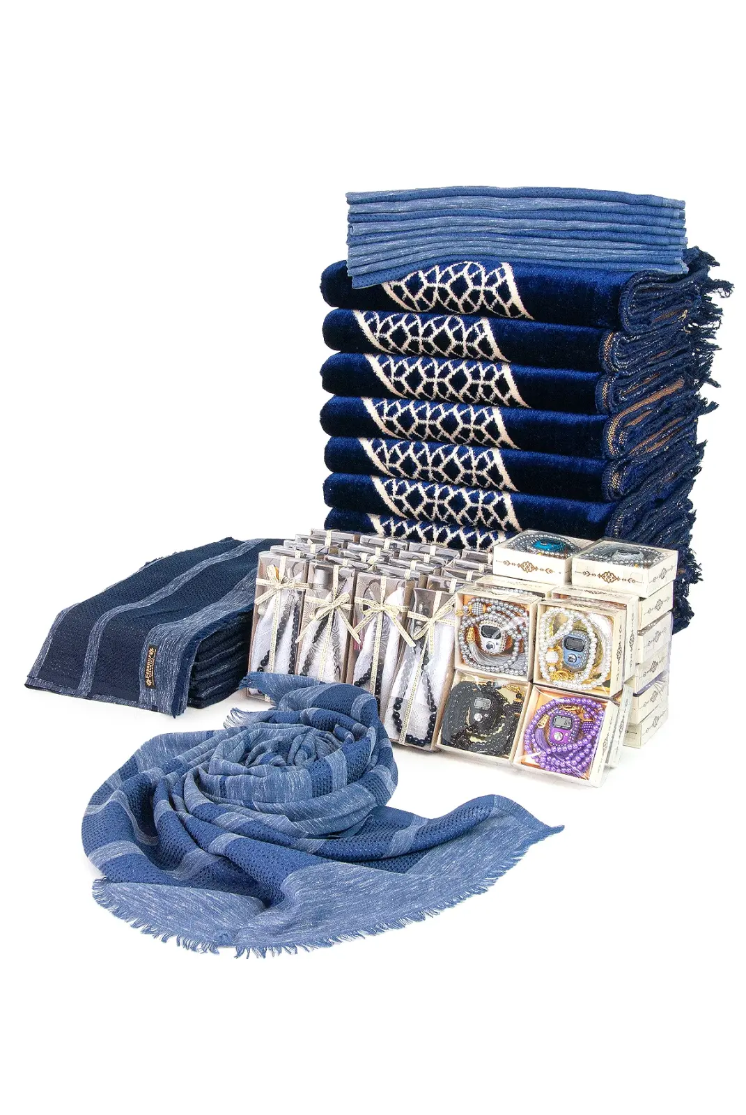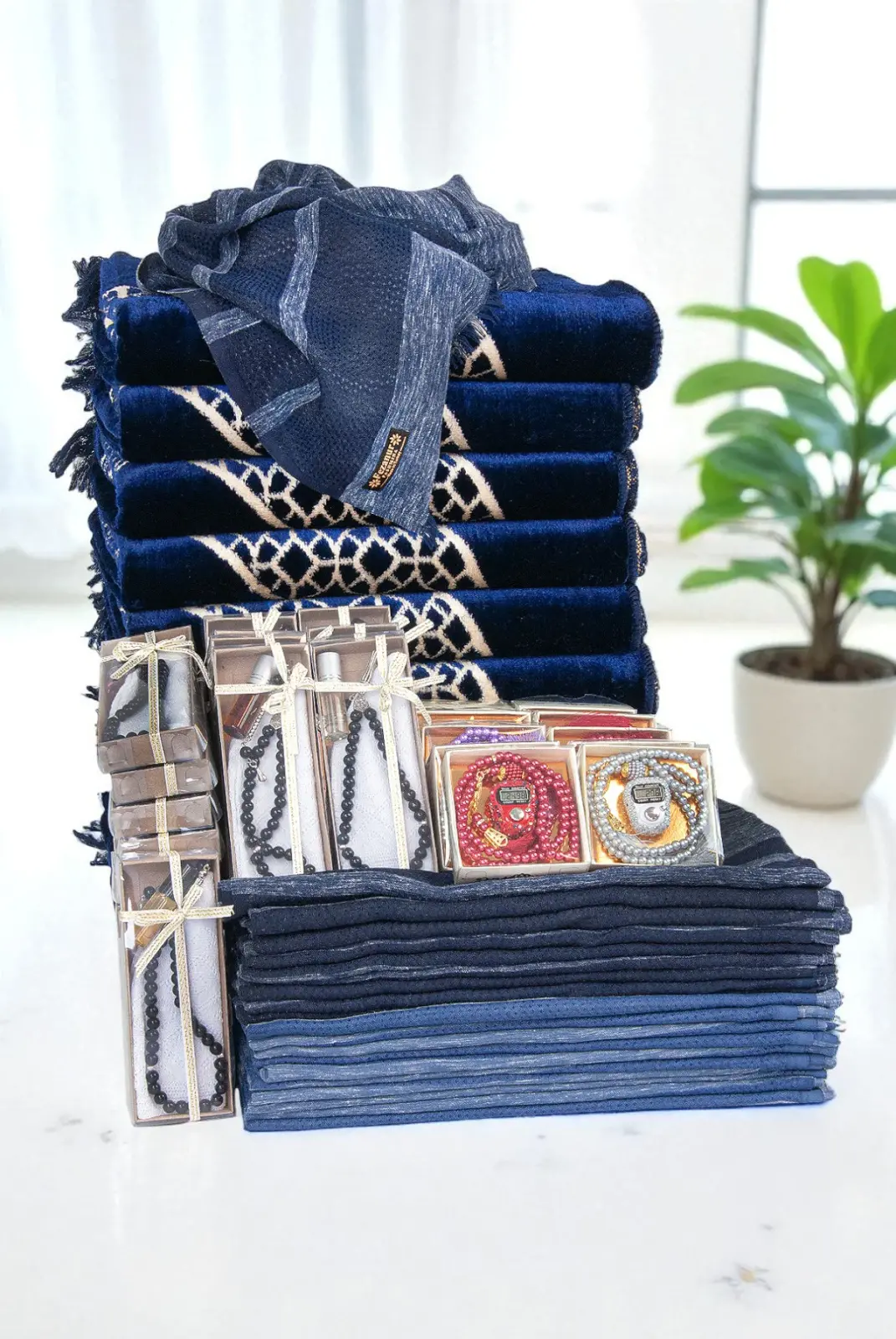 20 Kişilik Hac ve Umre Hediyelik Kadife Seccade Seti – Lacivert