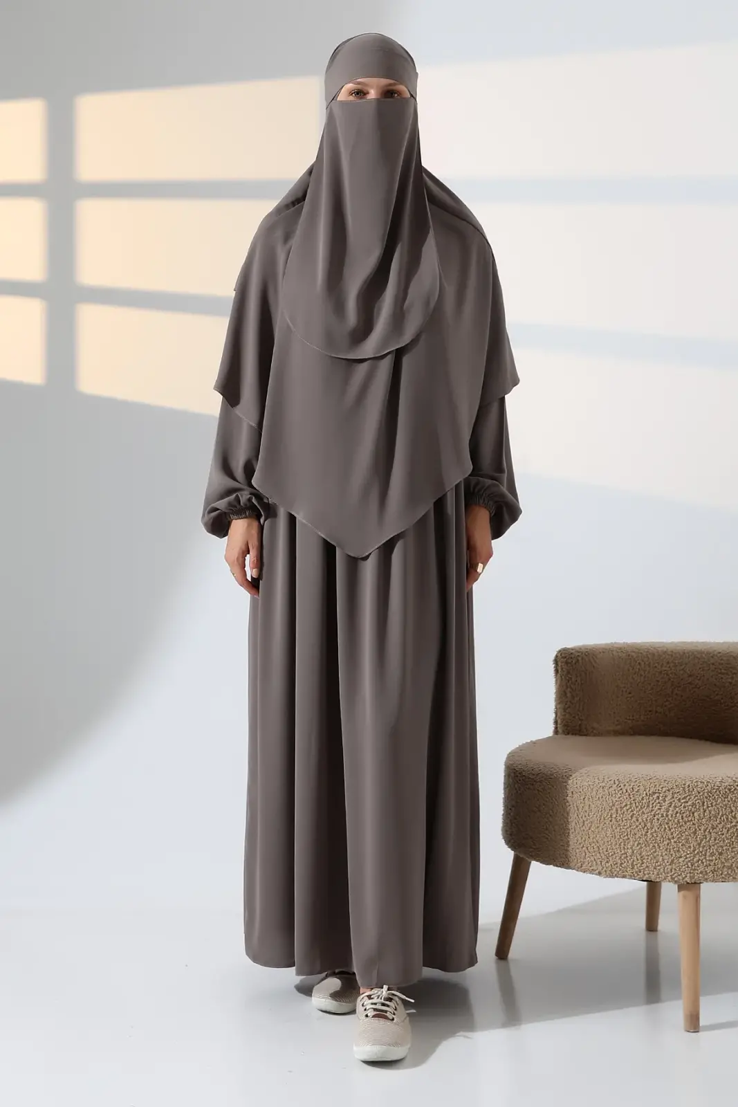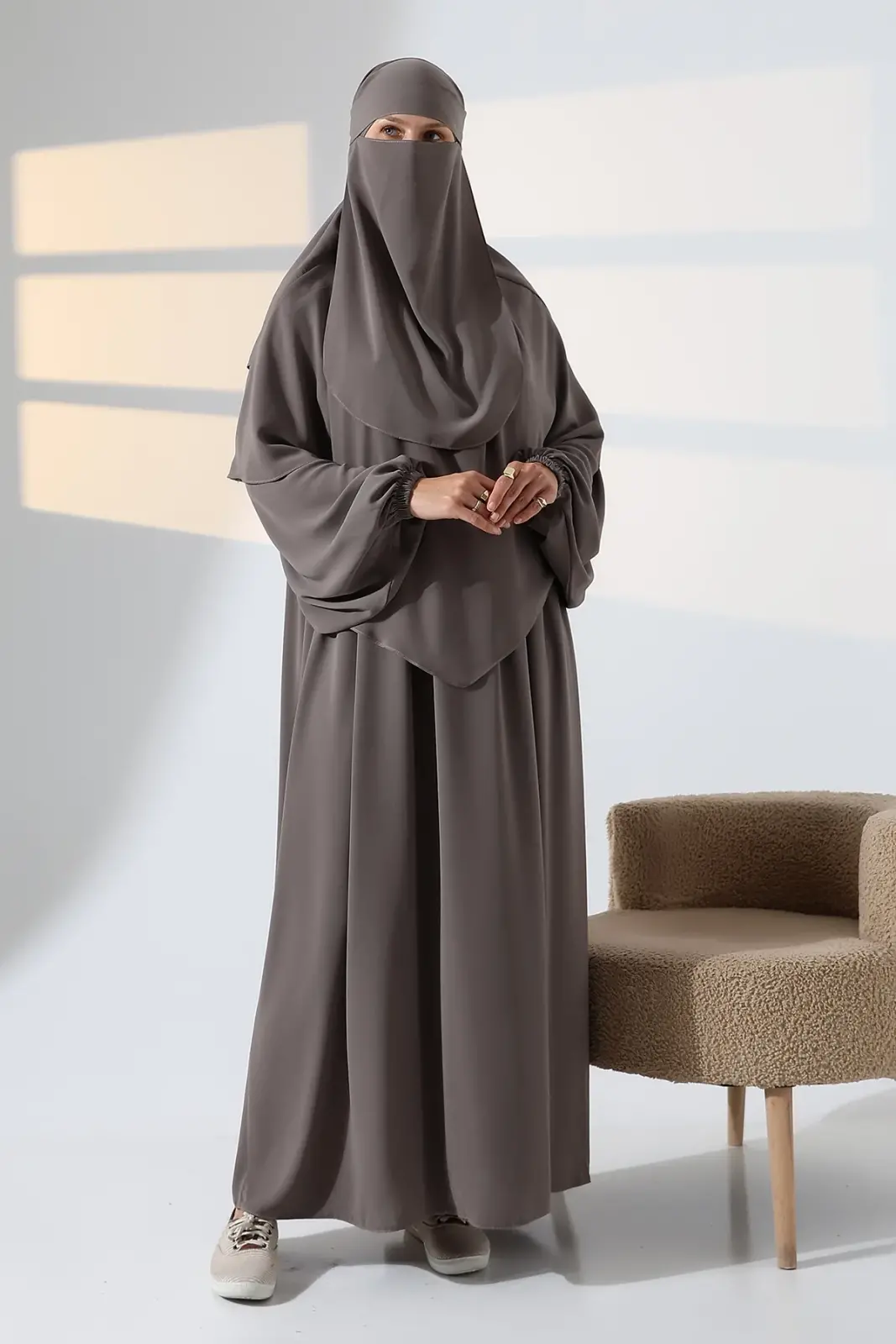 3 Parça Set: Ferace, sufle ve peçe olmak üzere üç parçadan oluşur.