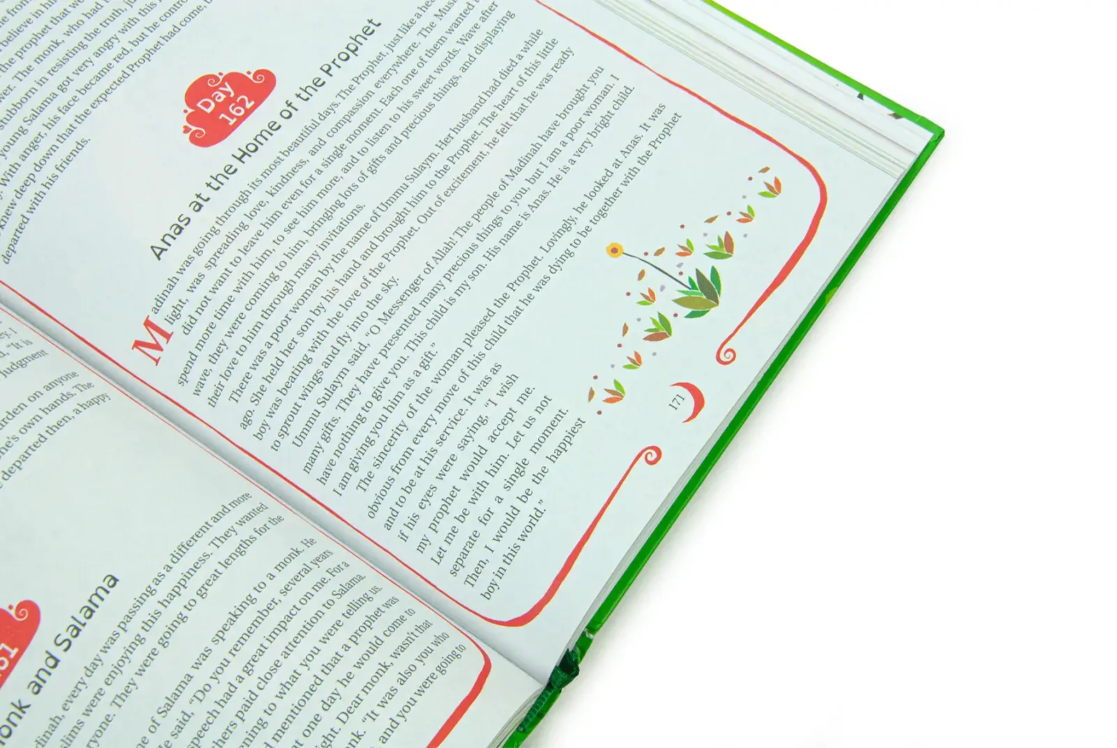 Yılın her günü için Peygamberimiz’in (s.a.v.) hayatından bir hikâye anlatılarak, çocuklarınızla birlikte her gece yeni bir hikâye okuyabileceğiniz ya da çocukların kendi başlarına okuyabilecekleri şekilde tasarlanmıştır. Hikâyeler kronolojik olarak sıralandığı için çocuklar aynı zamanda temel İslam tarihine dair bir anlayış da kazanmaya başlarlar.