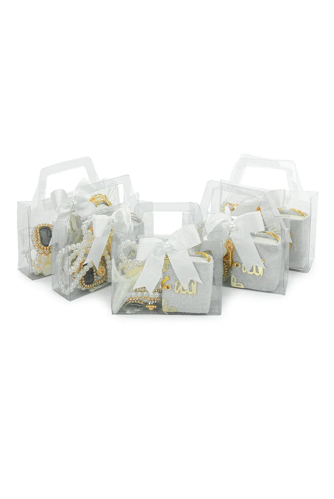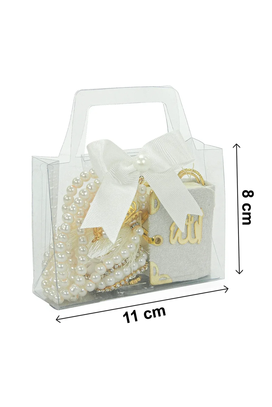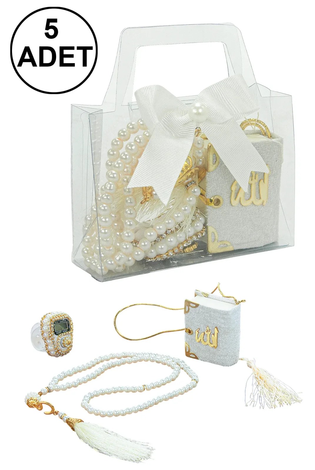 Sevdiklerinizi özel tasarlanmış ve anlam yüklü bir hediye ile mutlu edin! Bu hediye seti, her detayıyla şıklığı ve manevi değeri bir araya getiriyor. Set, beyaz renginde zarif bir tasarıma sahip olup, mini boy Kuran-ı Kerim, zikirmatik, tesbih ve şık bir hediye çantası ile birlikte sunulmaktadır. Hem kadınlar hem de erkekler için uygundur, özel günlerde unutulmaz bir hediye alternatifi olarak tercih edilebilir.