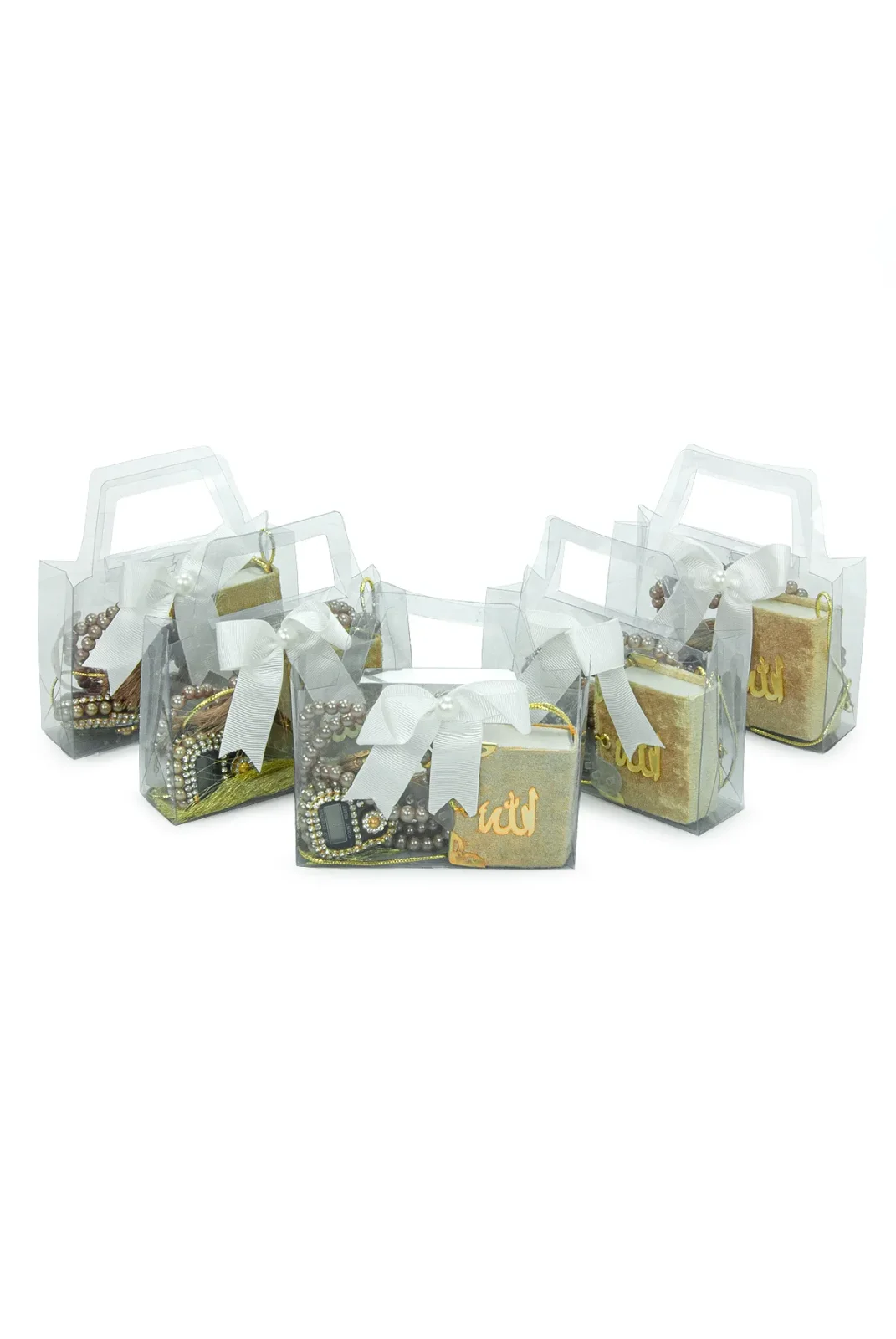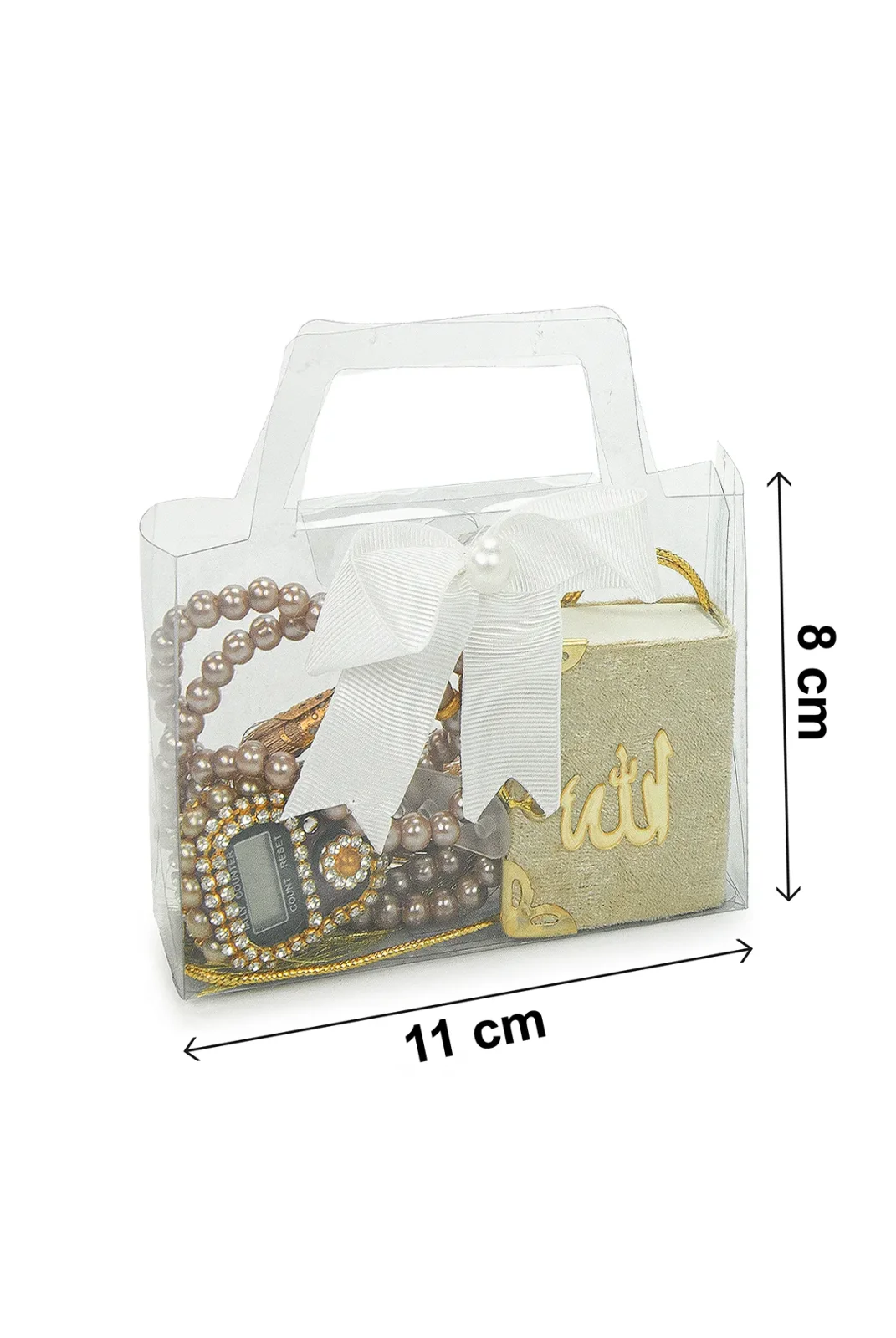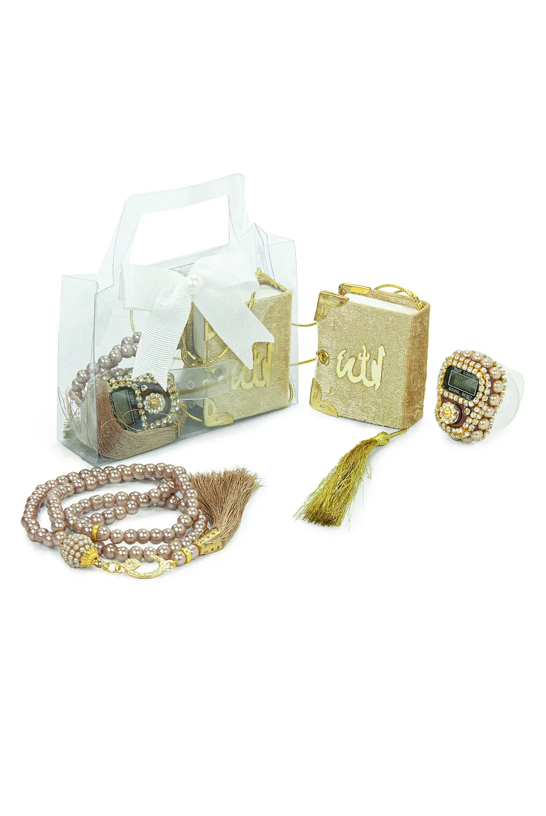 Sevdiklerinizi özel tasarlanmış ve anlam yüklü bir hediye ile mutlu edin! Bu hediye seti, her detayıyla şıklığı ve manevi değeri bir araya getiriyor. Set, gold renginde zarif bir tasarıma sahip olup, mini boy Kuran-ı Kerim, zikirmatik, tesbih ve şık bir hediye çantası ile birlikte sunulmaktadır. Hem kadınlar hem de erkekler için uygundur, özel günlerde unutulmaz bir hediye alternatifi olarak tercih edilebilir.