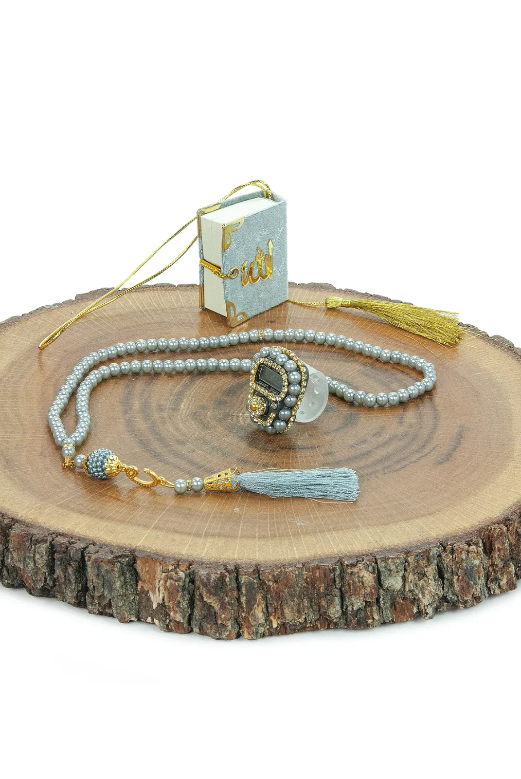 5 Adet Tesbih: Gri renginde inci detaylı tesbih, manevi anlamı yüksek bir hatıra.
