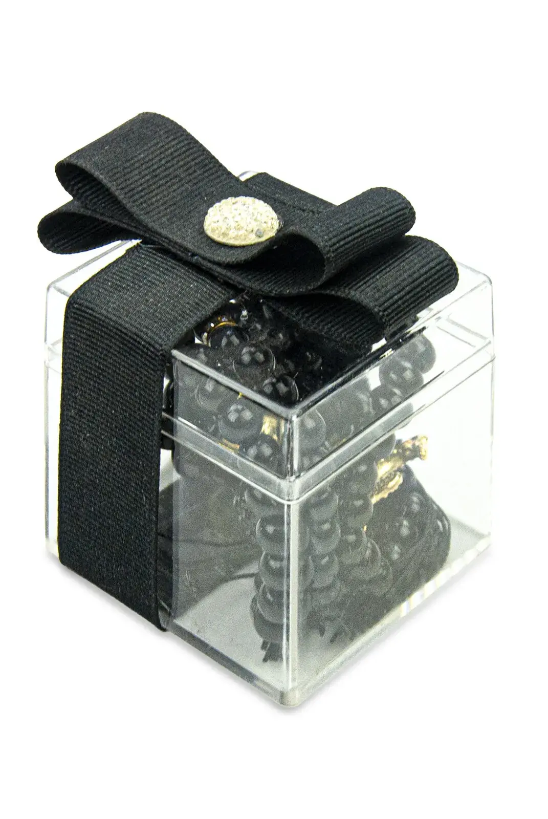 5 Adet Hediyelik Dekoratif Mika Kutulu 99 lu İnci Tesbih - Siyah