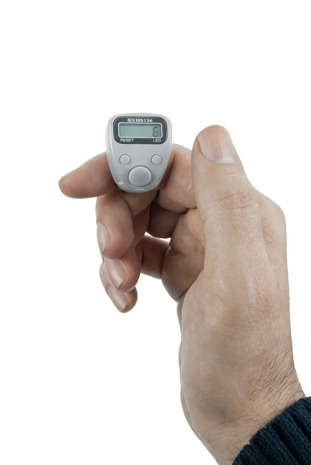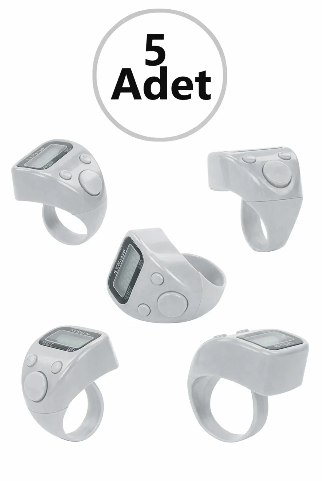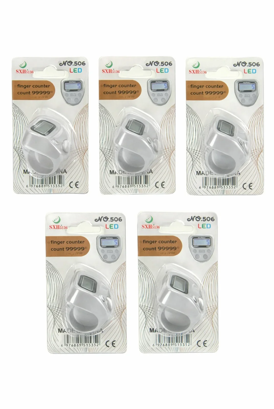 5 Adet Işıklı Parmak Zikirmatik Yüzük - LED Aydınlatmalı Dijital Sayaç 5li Ekonomik Set - Gri