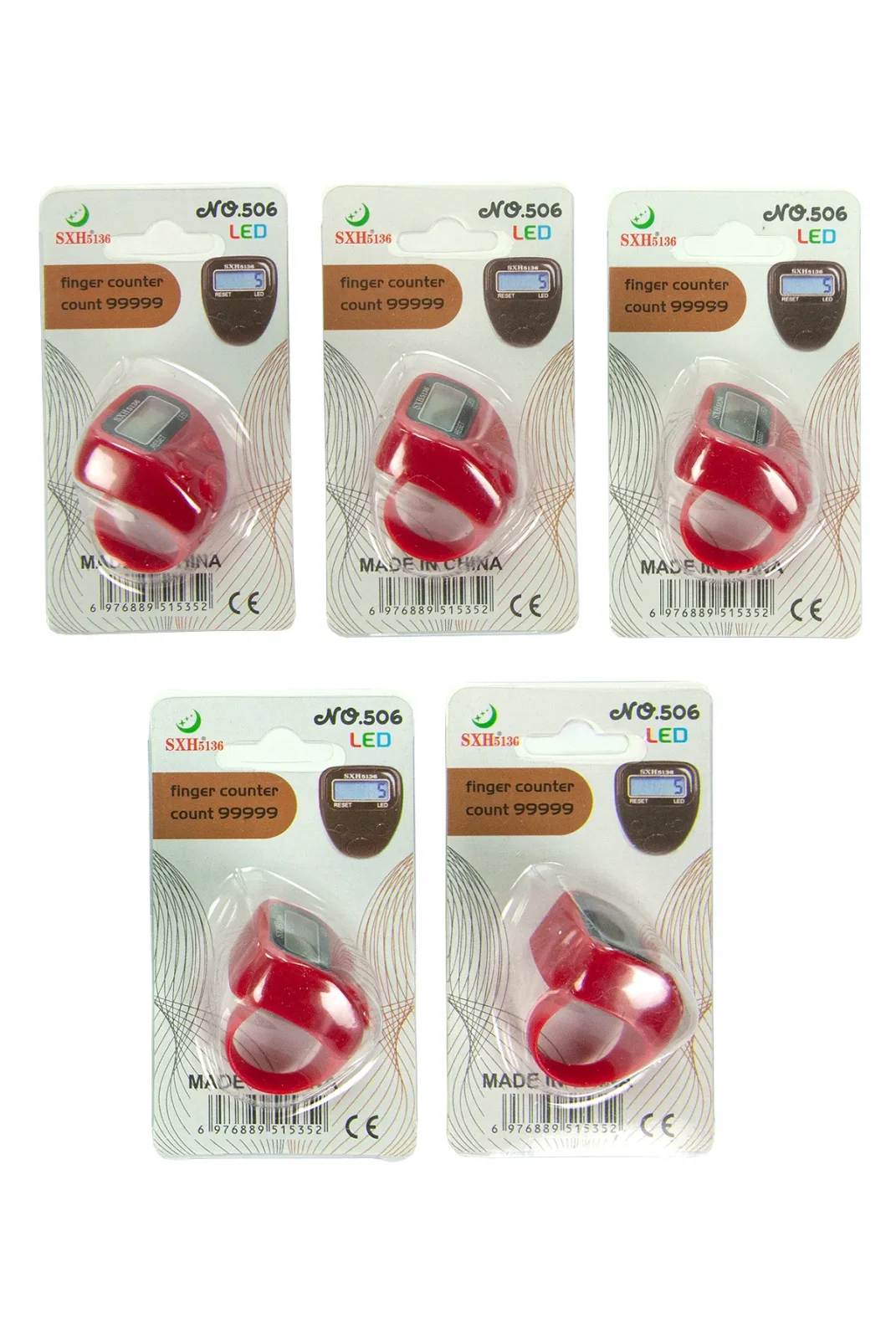 5 Adet Işıklı Parmak Zikirmatik Yüzük - LED Aydınlatmalı Dijital Sayaç 5li Ekonomik Set - Kırmızı