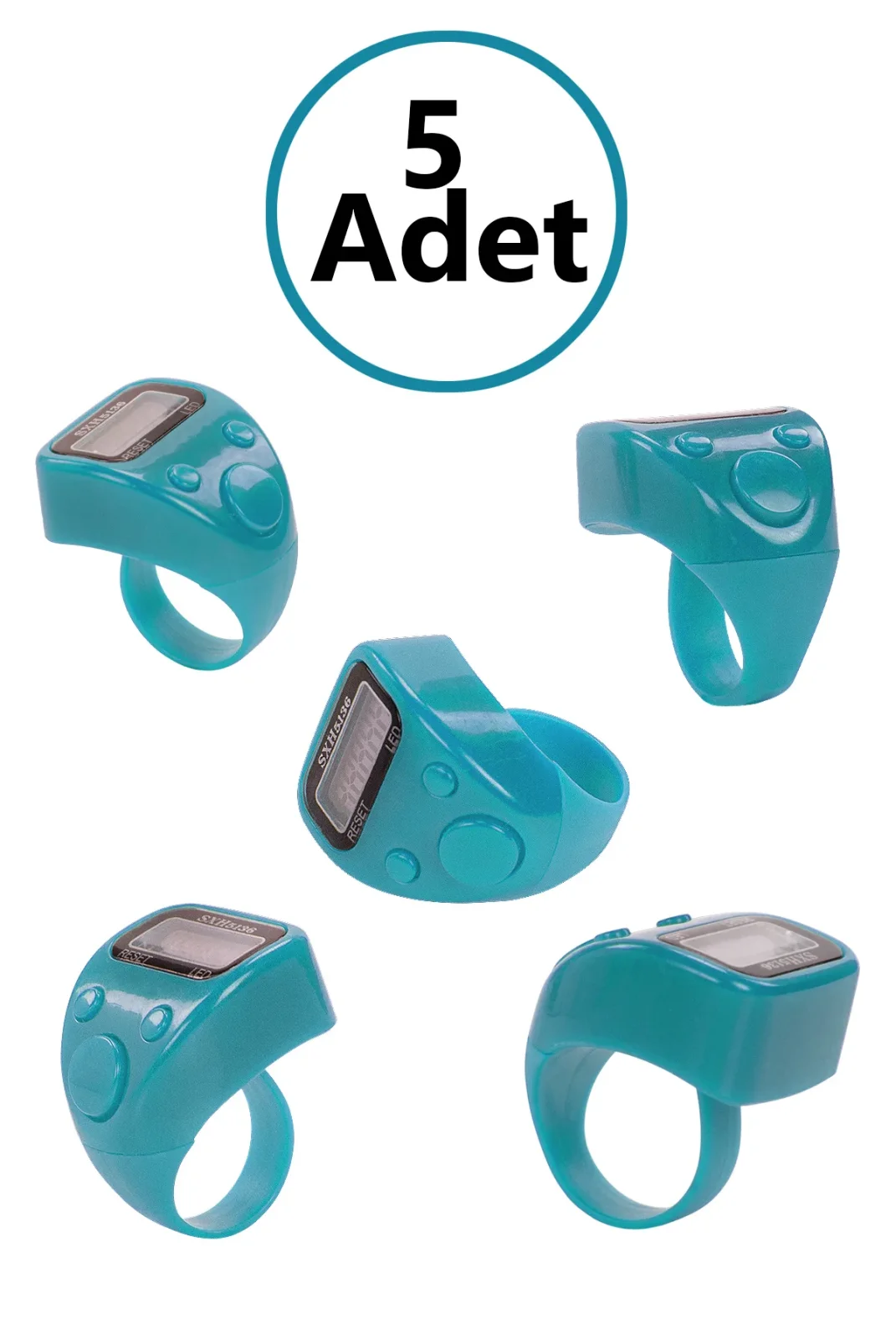 5 Adet Işıklı Parmak Zikirmatik Yüzük - LED Aydınlatmalı Dijital Sayaç 5li Ekonomik Set - Mavi