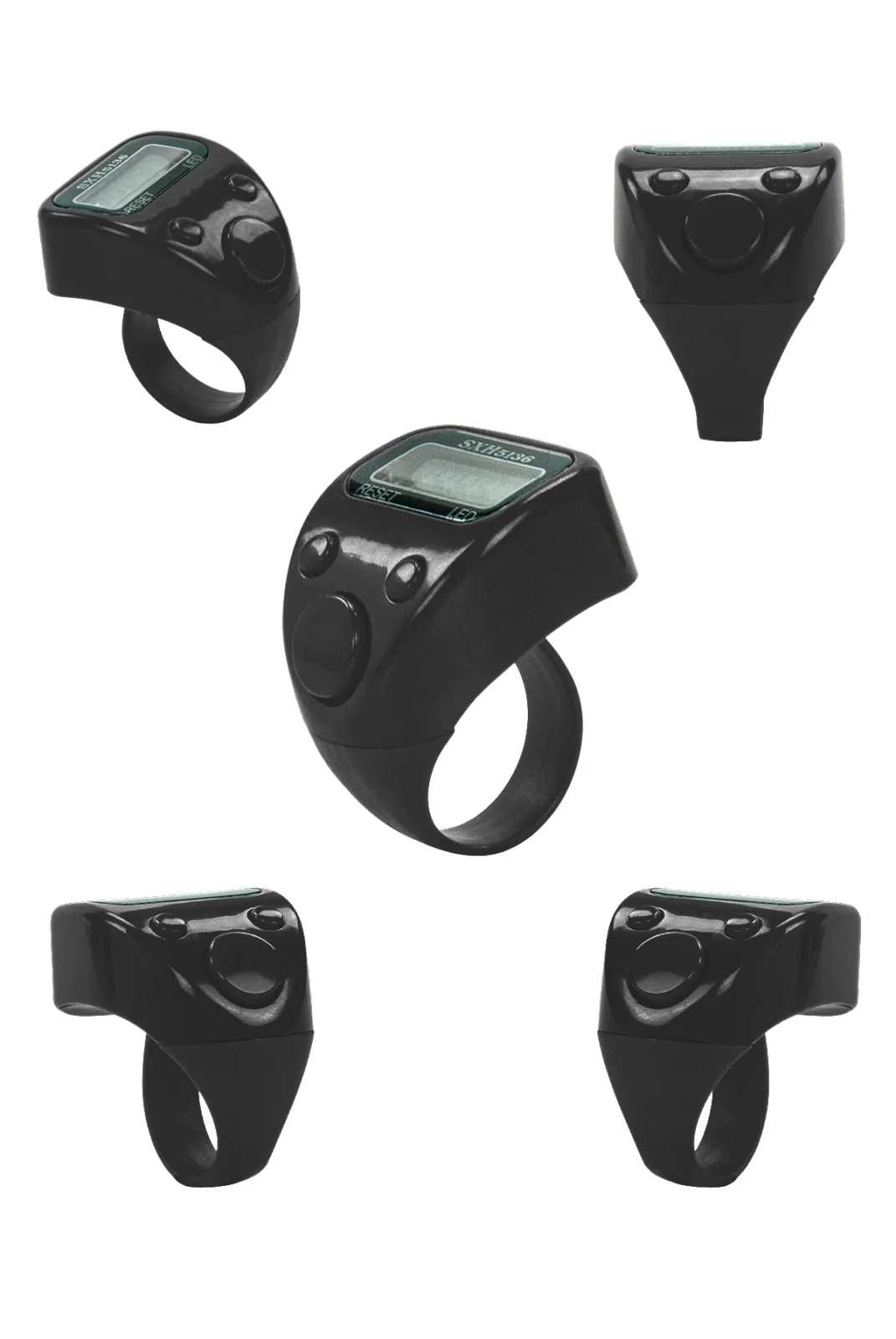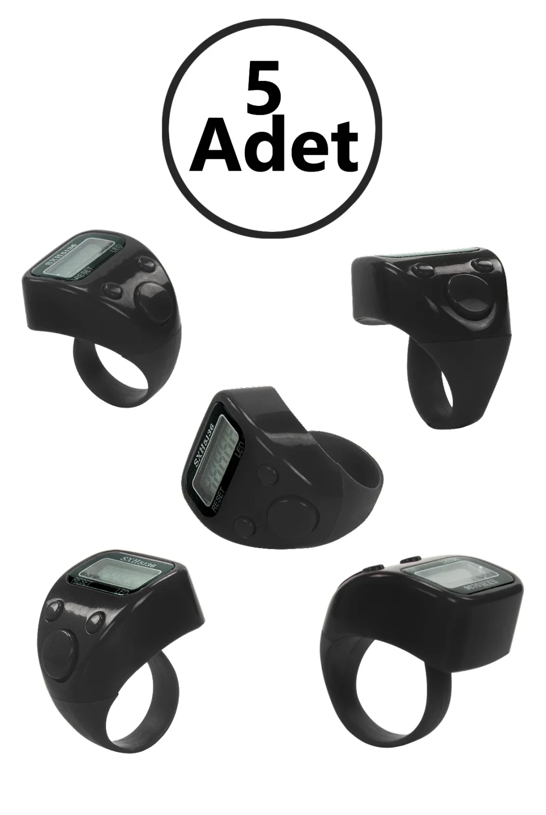 5 Adet Işıklı Parmak Zikirmatik Yüzük - LED Aydınlatmalı Dijital Sayaç 5li Ekonomik Set - Siyah