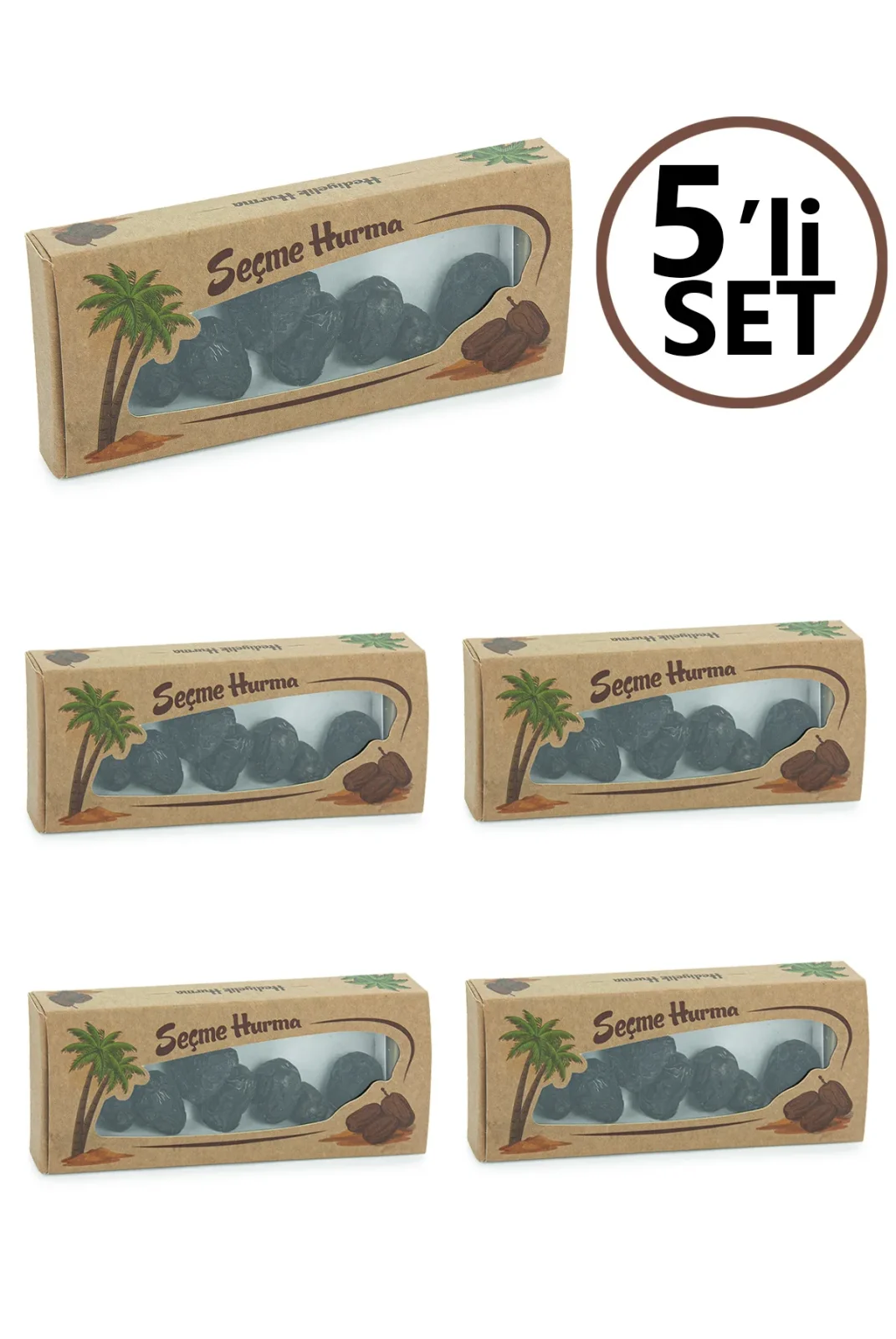 İçerik: 5 Paket gönderilmektedir. Her kutuda titizlikle seçilmiş 7 adet Acve hurması bulunmaktadır.