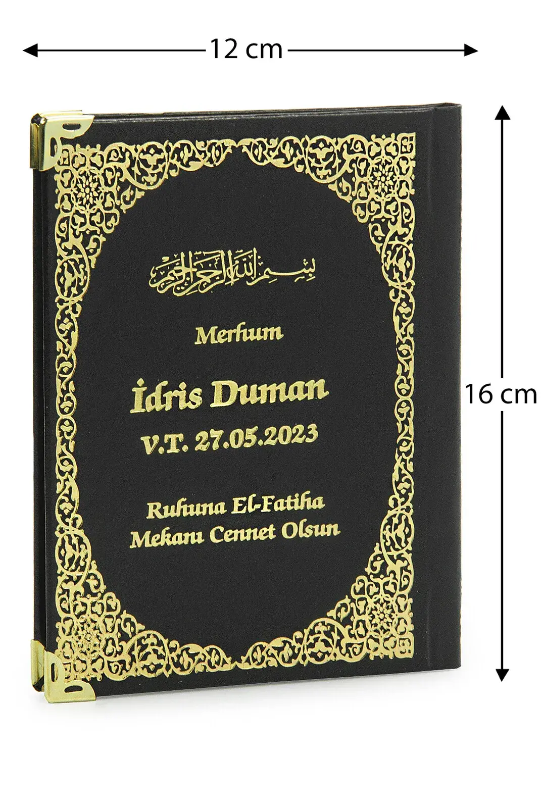 50 Adet İsim Baskılı Ayet-el Kürsi Desenli Yaldızlı Deri Ciltli Çanta Boy Yasin Kitabı Mevlüt Hediyesi 128 Sayfa Siyah