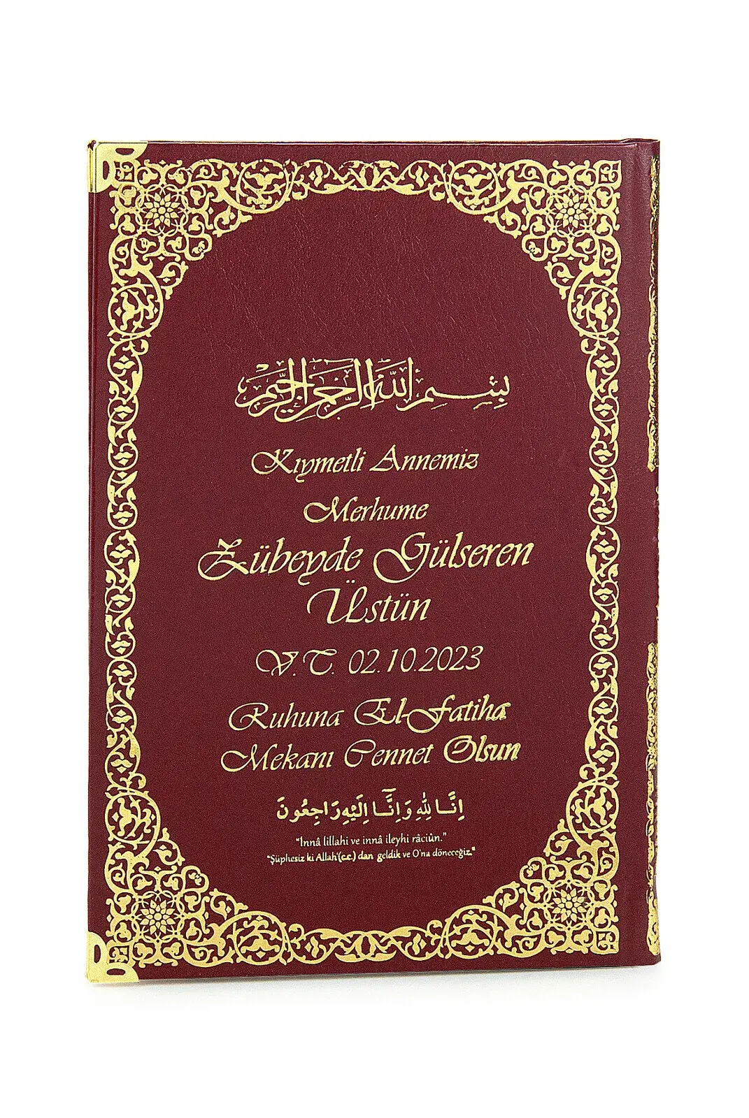 50 Adet İsim Baskılı Kutulu Tesbihli Orta Boy Deri Ciltli Yasin Kitabı Mevlüt Hediyesi Bordo