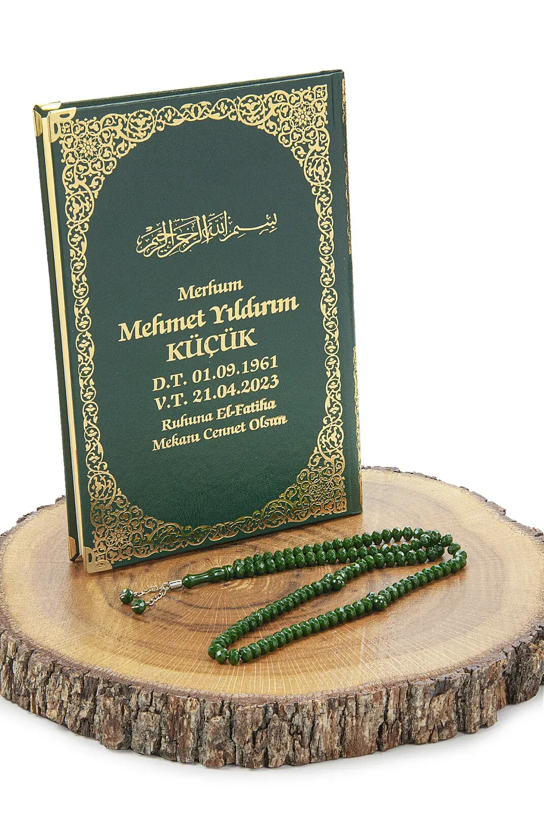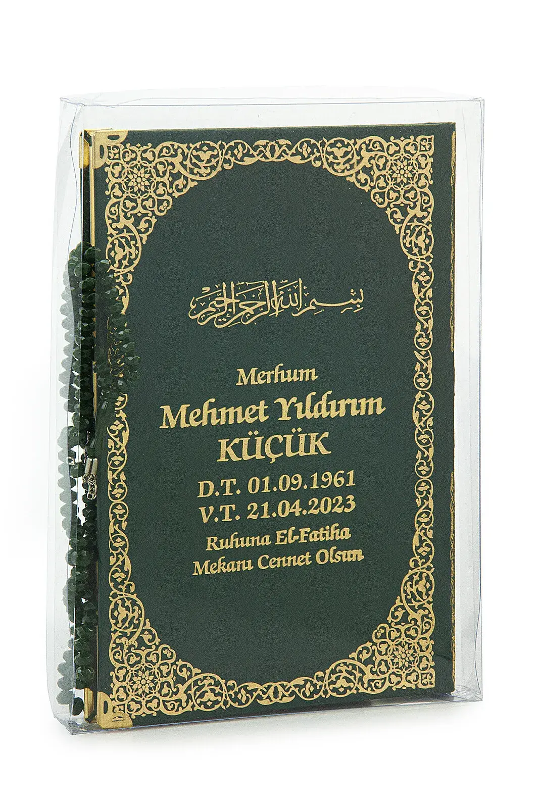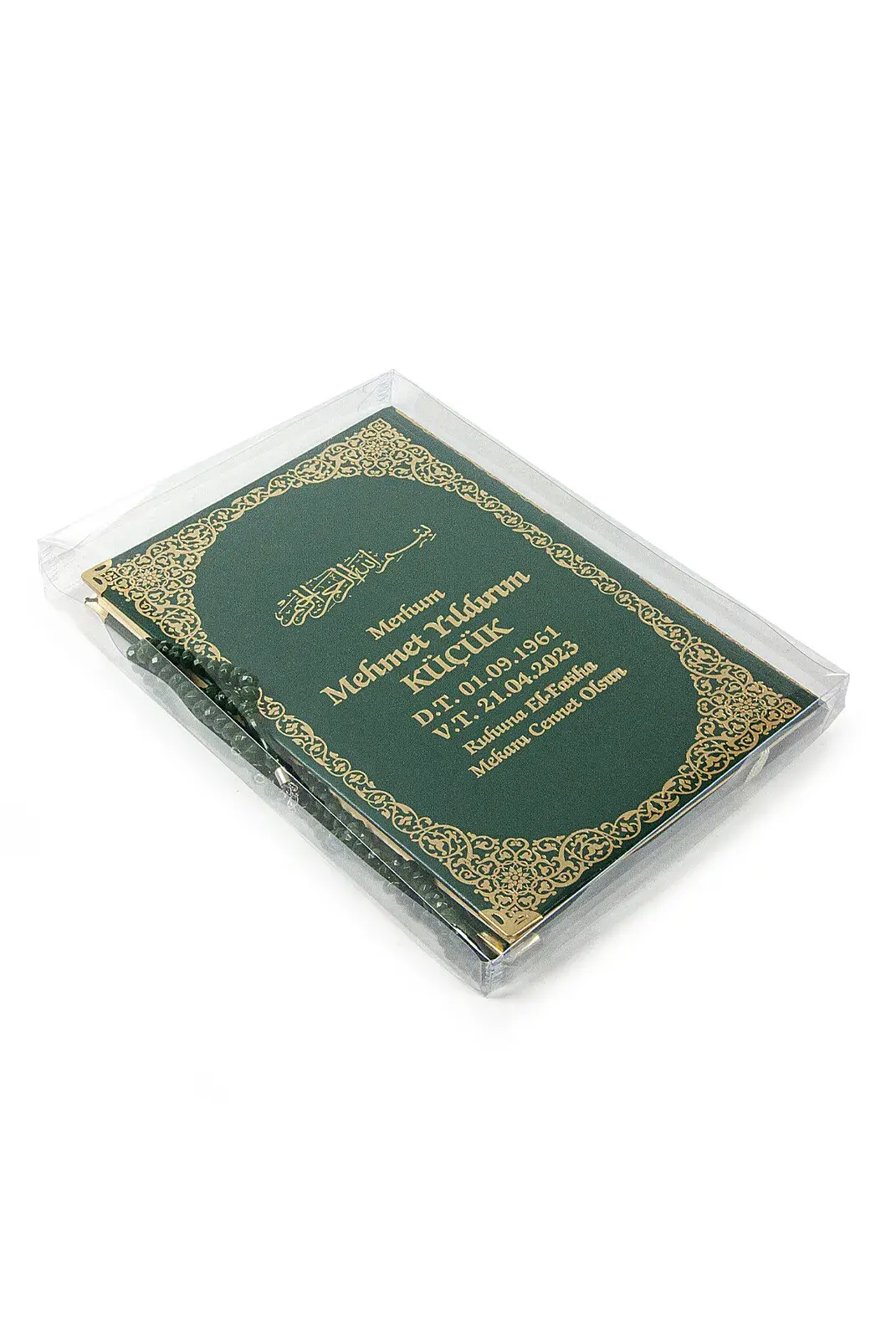50 Adet İsim Baskılı Kutulu Tesbihli Orta Boy Deri Ciltli Yasin Kitabı Mevlüt Hediyesi Yeşil