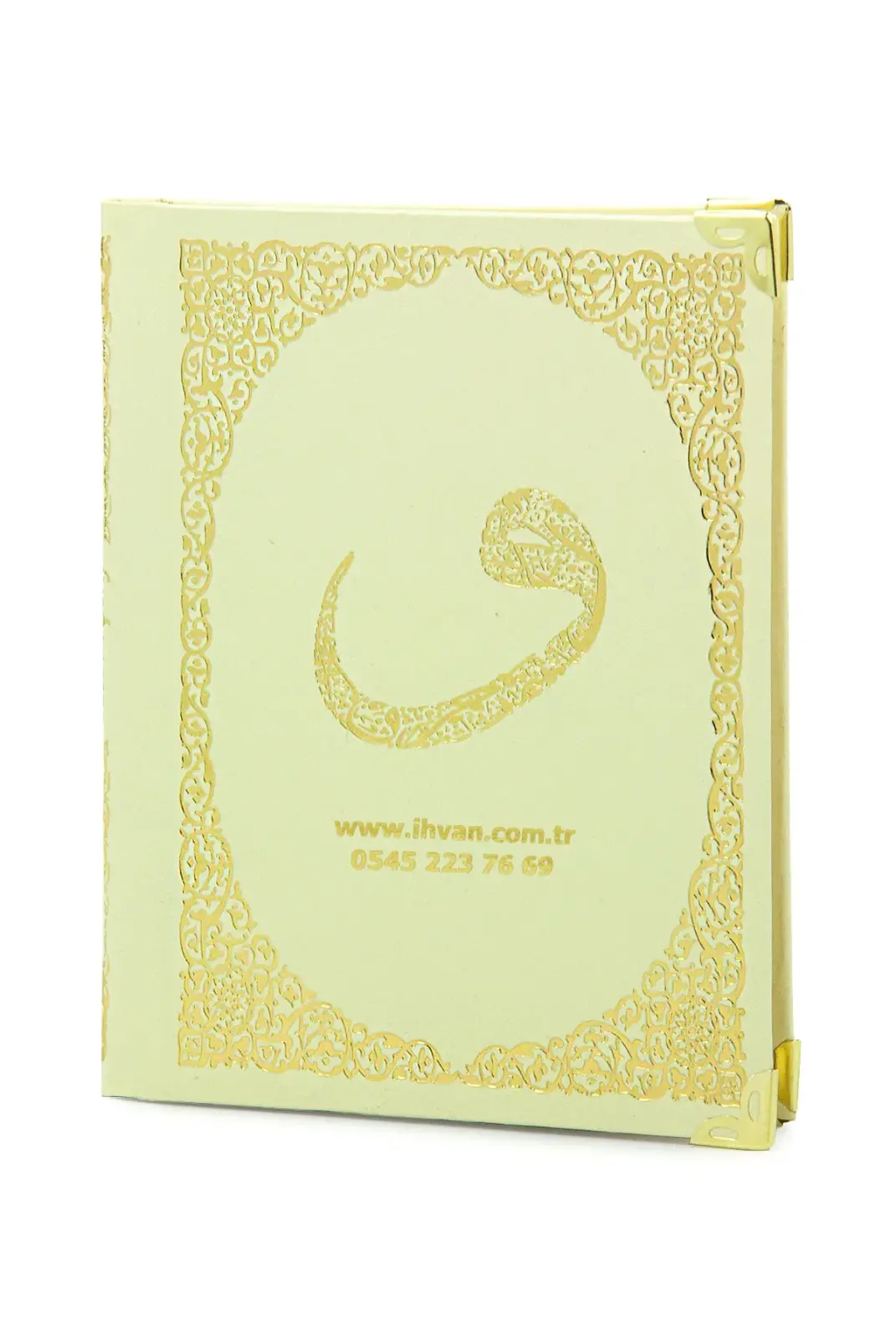 50 Adet İsim Baskılı Vav Desenli Yaldızlı Deri Ciltli Çanta Boy Yasin Kitabı Mevlüt Hediyesi 128 Sayfa Krem