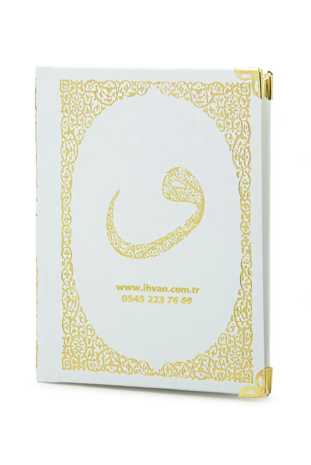 50 Adet İsim Baskılı Vav Desenli Yaldızlı Deri Ciltli Çanta Boy Yasin Kitabı Mevlüt Hediyesi 128 Sayfa Beyaz
