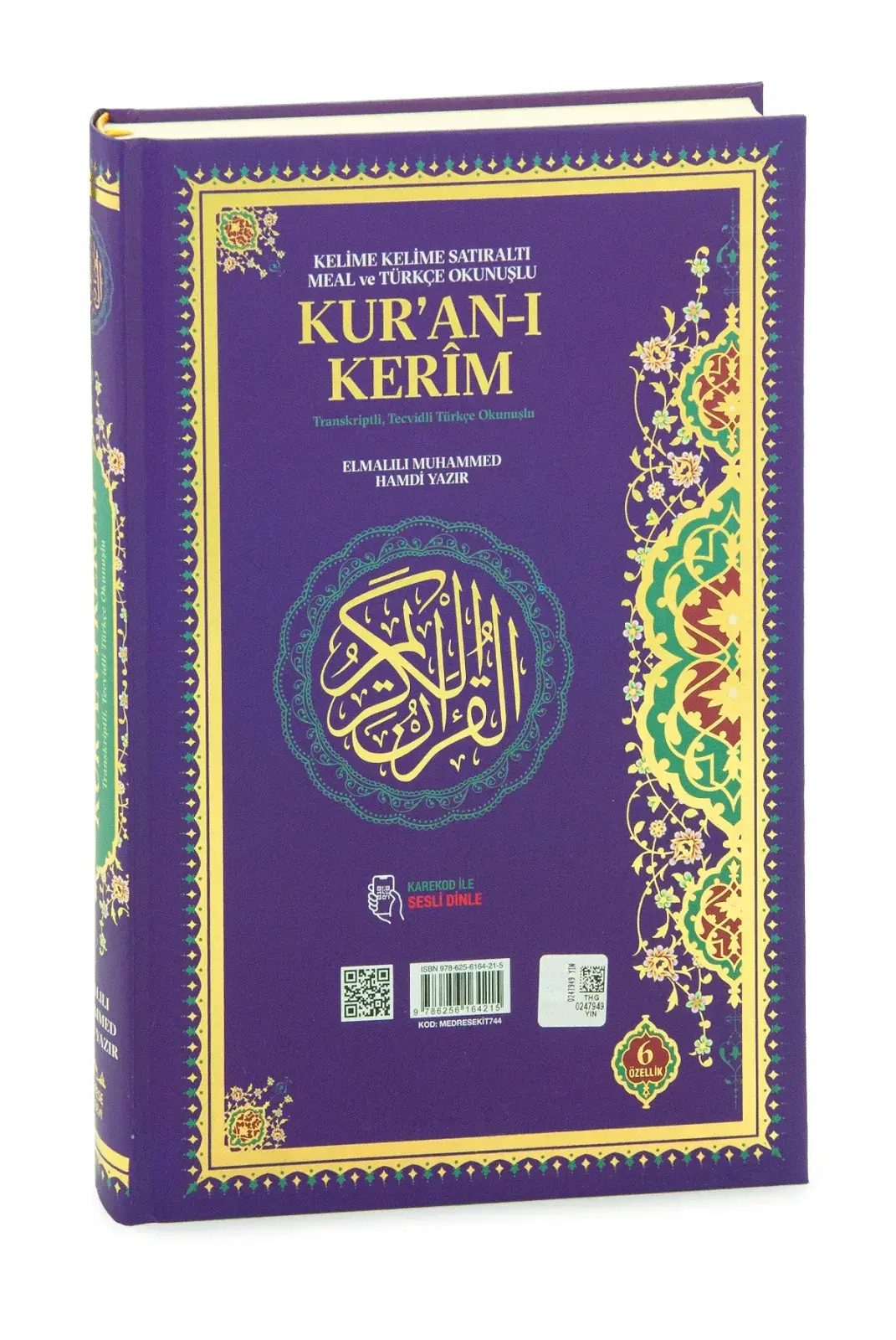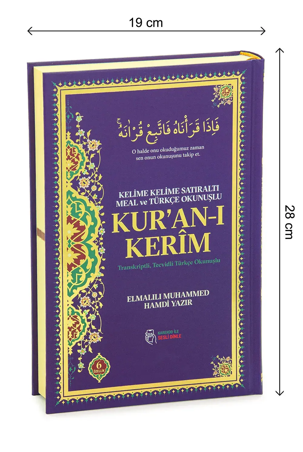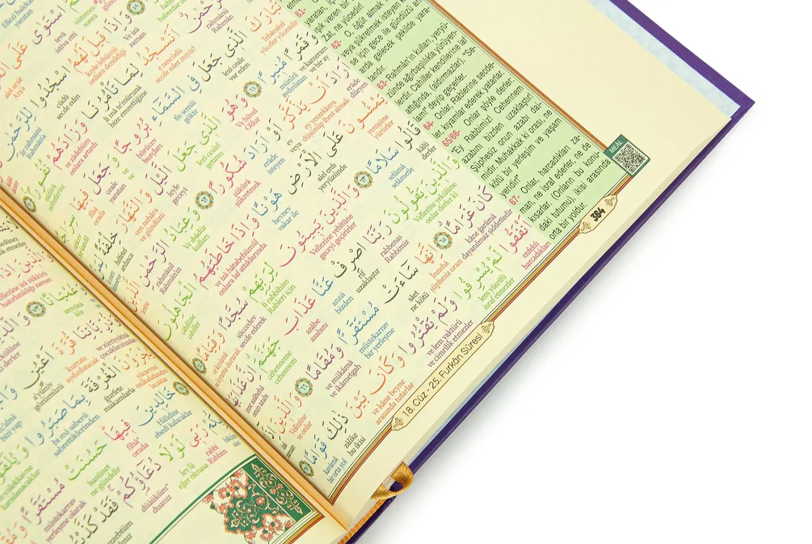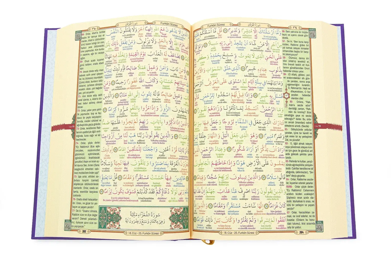 6 Özellikli Satır Arası Kelime Kelime Türkçe Okunuşlu Mealli Kuranı Kerim Rahle Boy - Mor