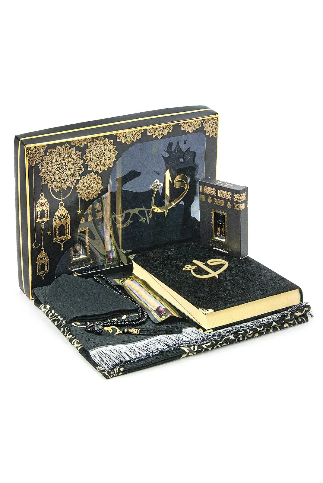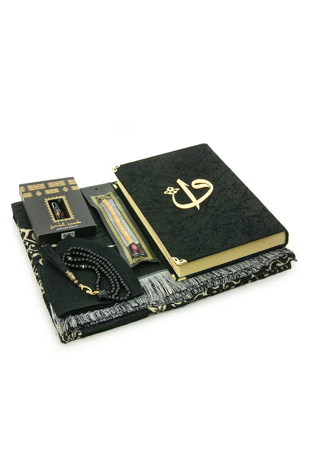 6 Parça Çeyizlik Damat Seccade Seti Hediyelik Kadife Kaplı Kuranı Kerim Seti