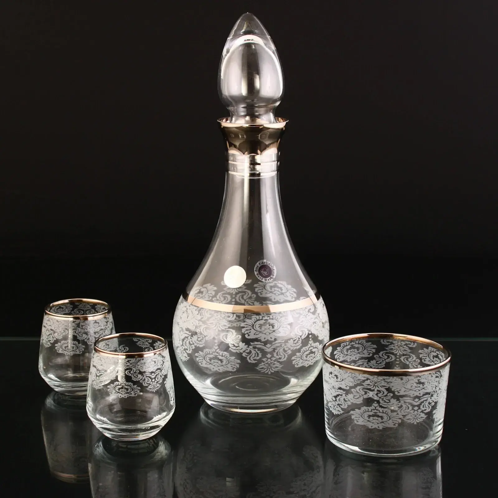 Helena Platin zemzem takımı, geleneksel motiflerin modern bir yorumu ile dikkat çeker. Camın doğallığı ve el emeğiyle işlenmiş altın yaldız detayları, bu takımı özel kılmaktadır.