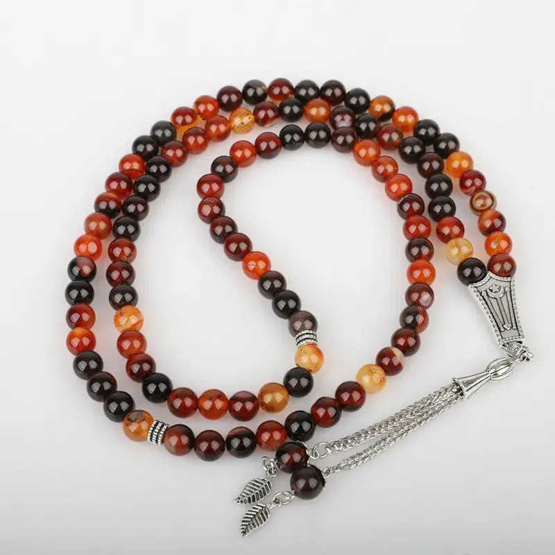 99 lu Doğal Akik Taşı Kırmızı Tesbih 8mm