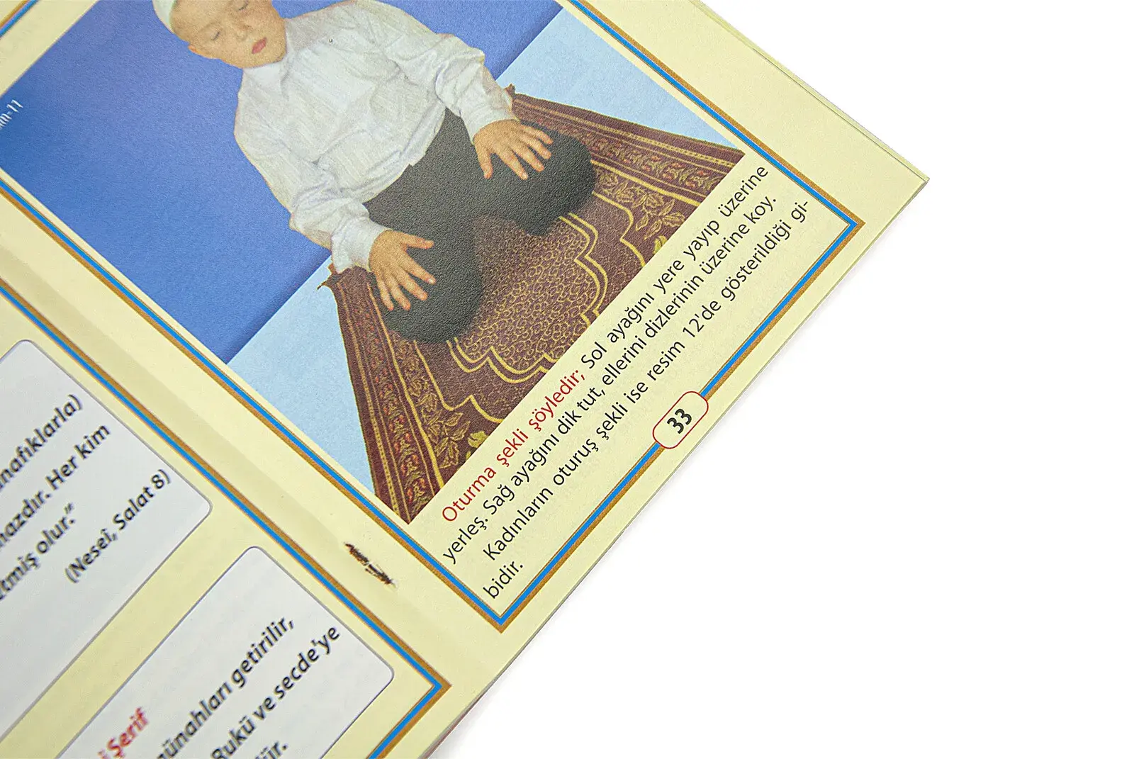 Dinimizin temizliğe verdiği önemi, Abdest, Gusül, 32 Farz, 5 Vakit Namaz, Cuma, Bayram ve Kaza Namazları; bu namazların nasıl kılındığı , Okunması Gereken Dualar, Amentü Ayet'el Kürsi - Amenerrasülü ve Ezan konuları Yer almaktadır.