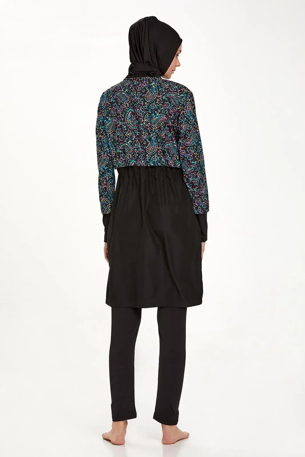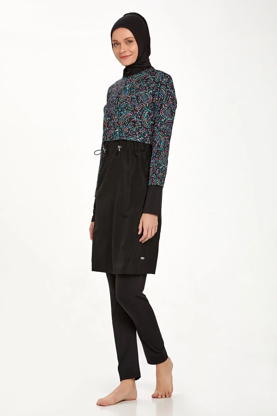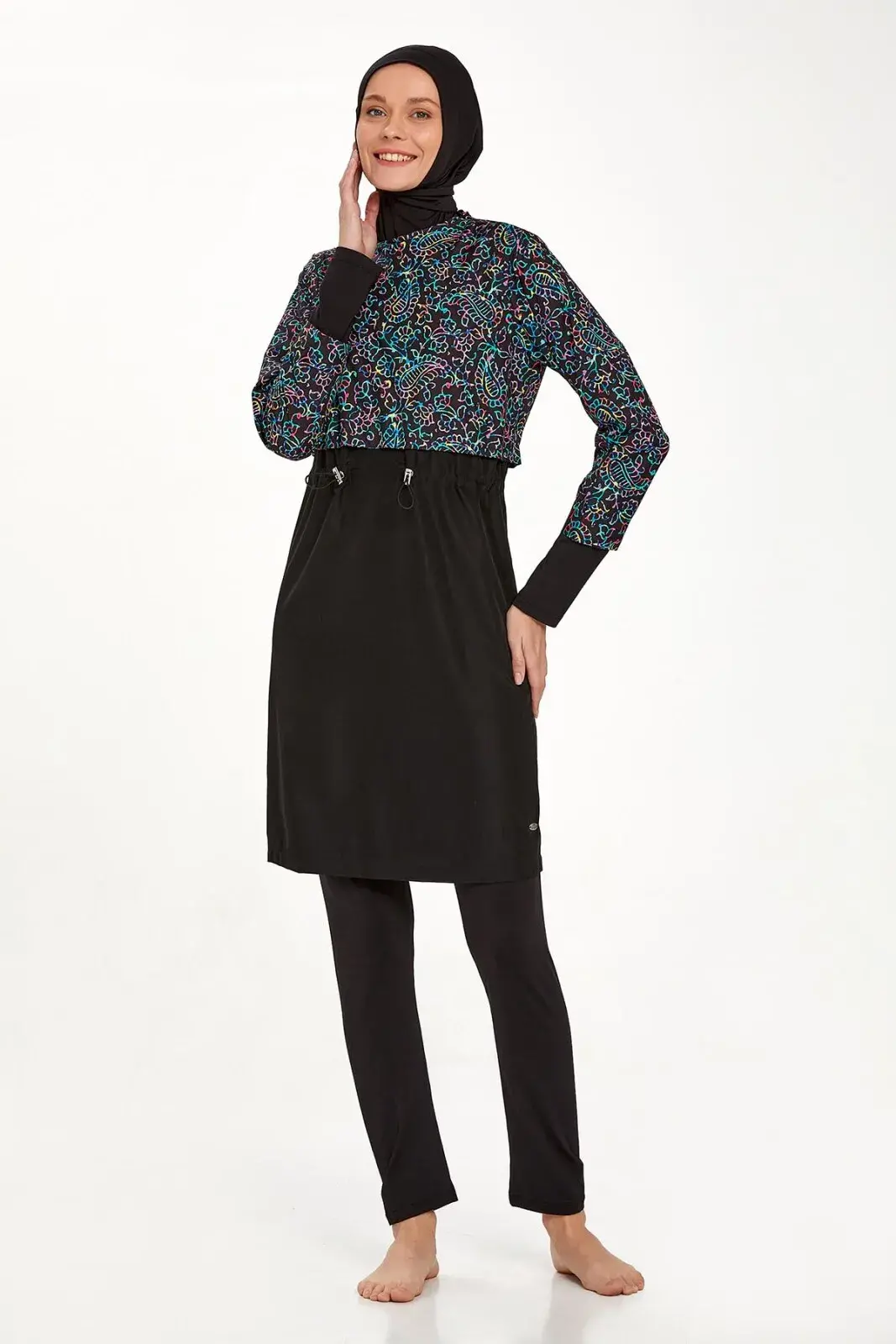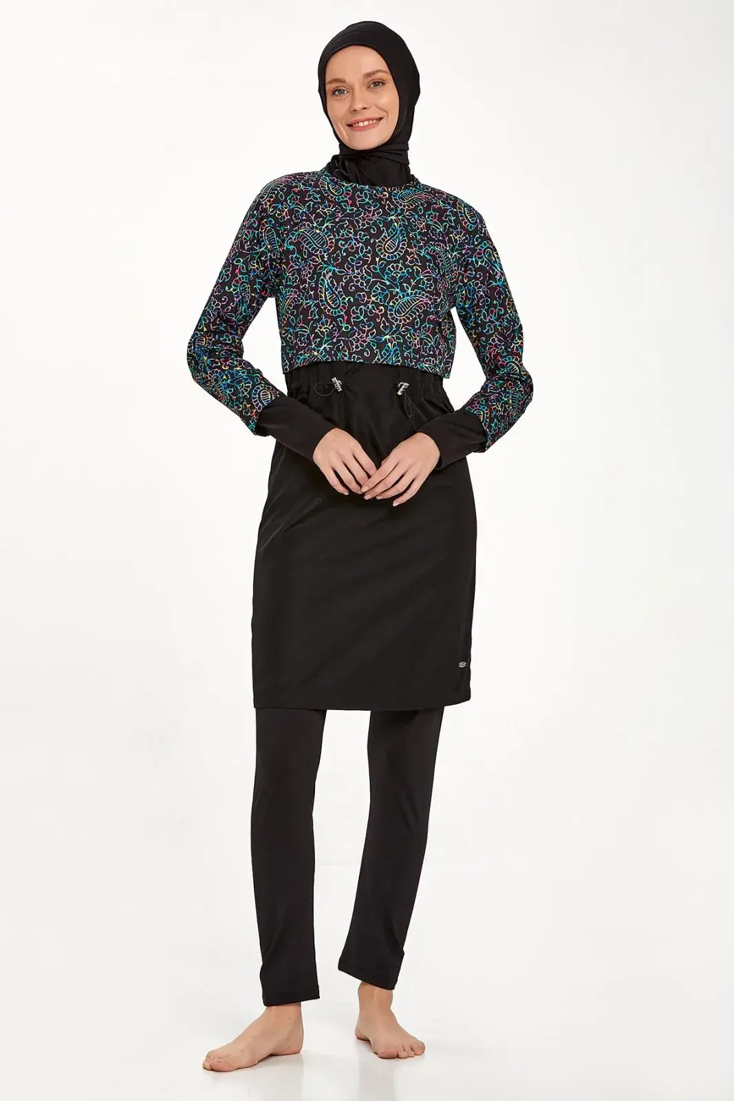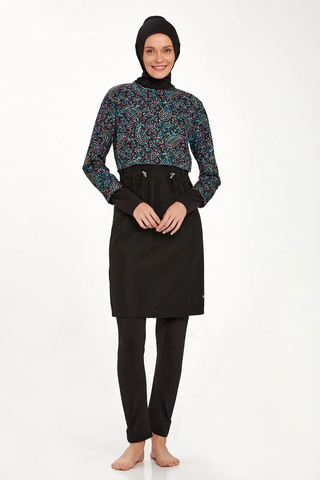 Adasea 1417 Siyah Crop Görünümlü Tam Kapalı Tesettür Mayo