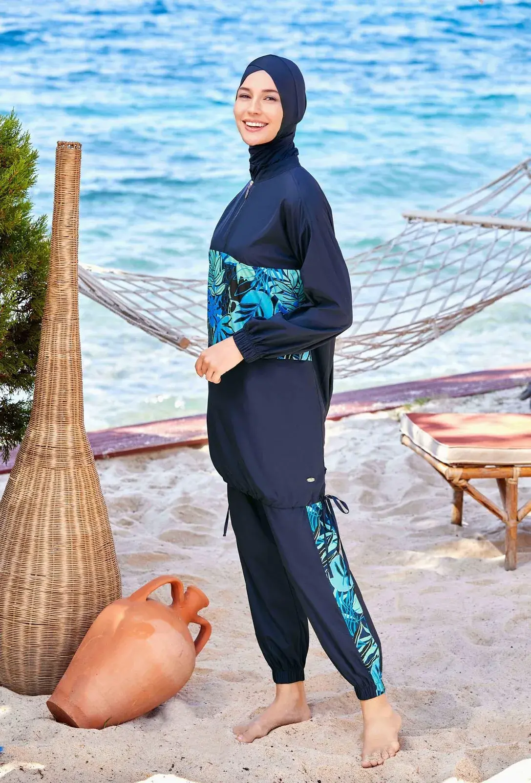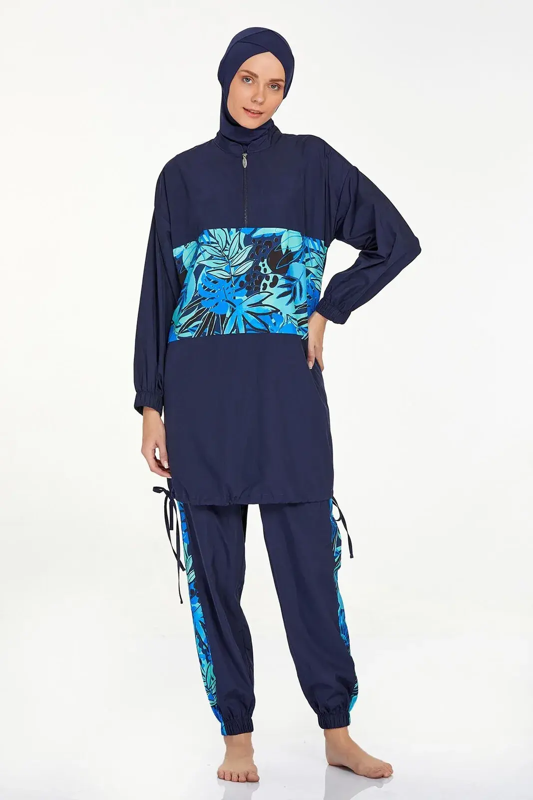 Adasea 1419-24 Koyu Lacivert Paraşüt Jileli Tam Tesettür Mayo