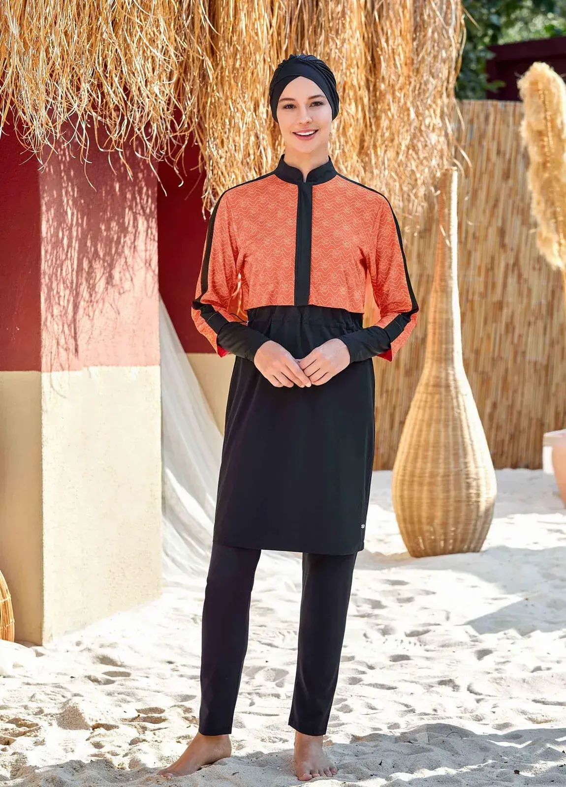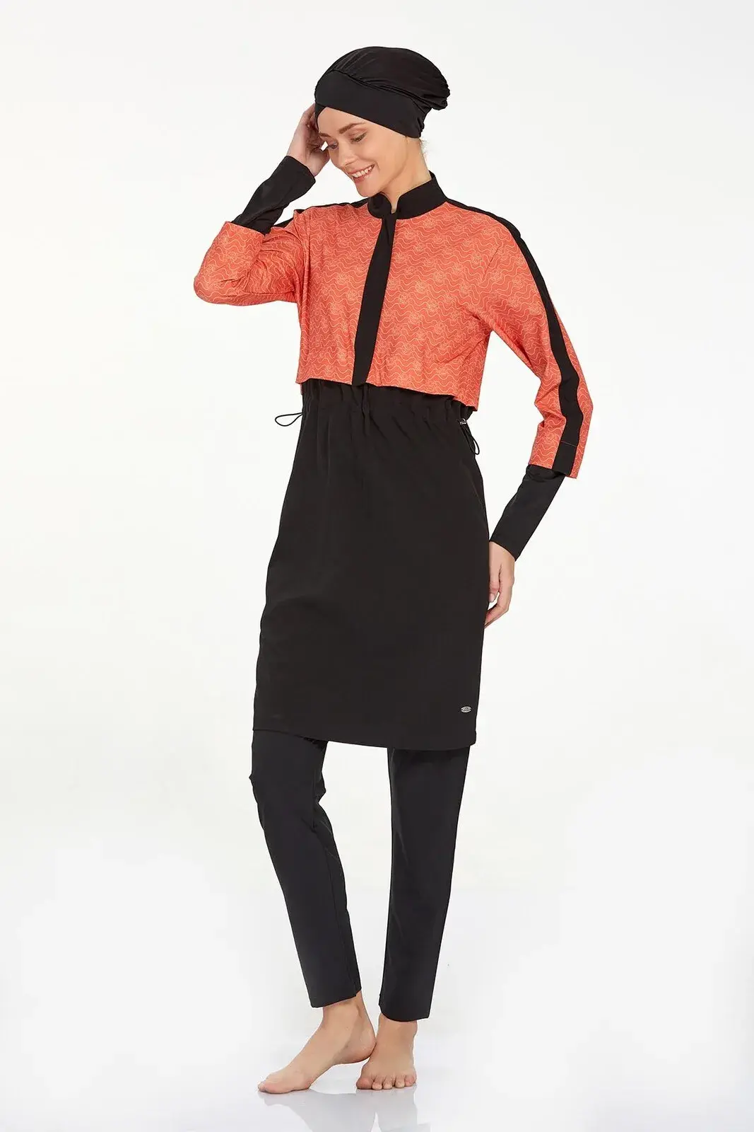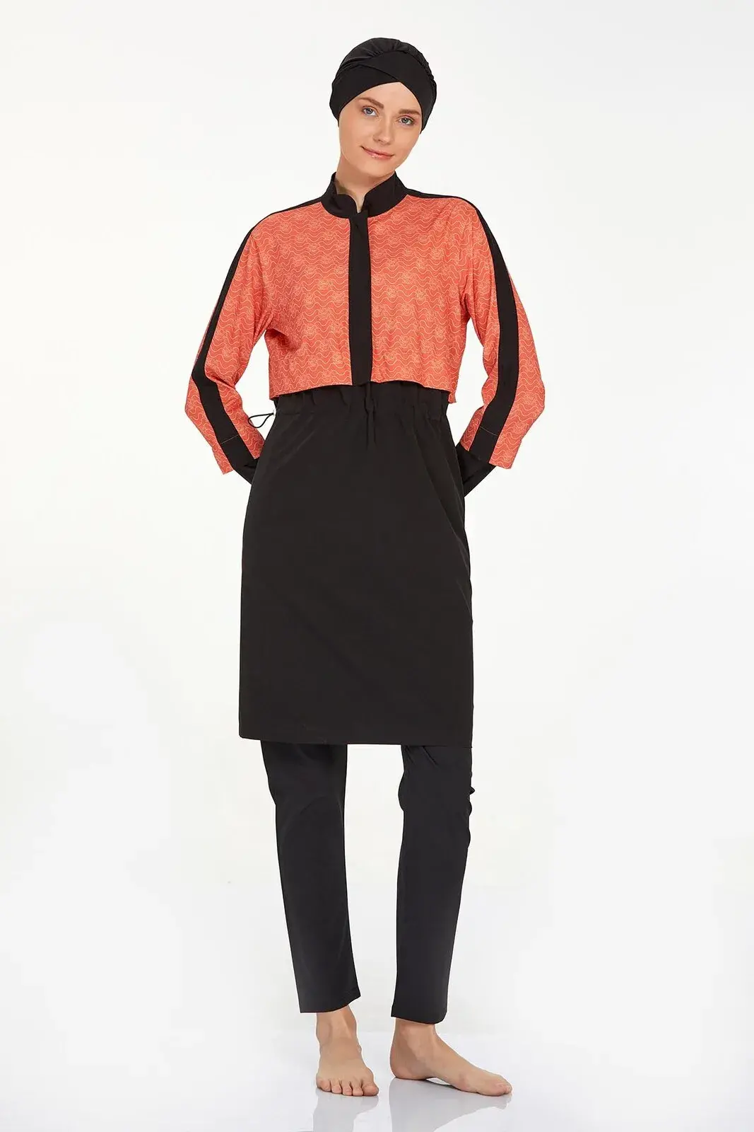 Adasea 4573-24 Siyah Nerea Desenli Tesettür Mayo