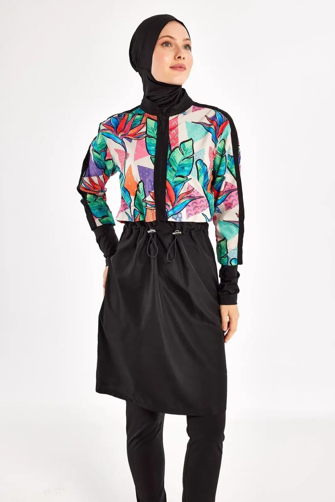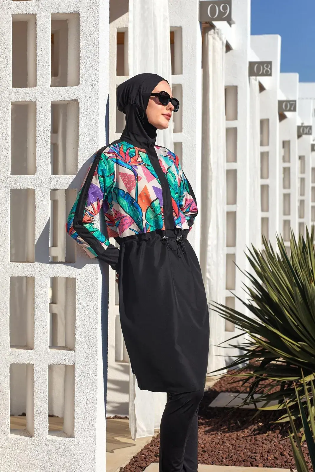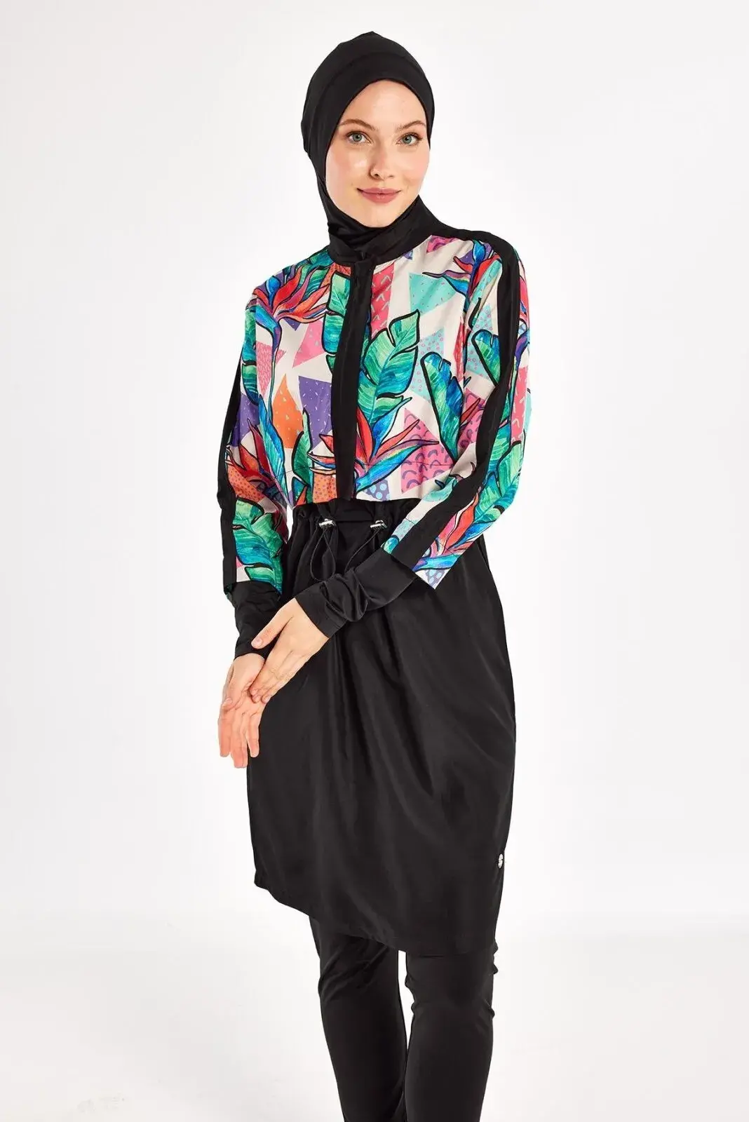 Sherry Uzun Kollu Tesettür Mayo, renkli ve enerjik tasarımıyla şıklığı ve rahatlığı bir arada sunuyor. Plajda ya da havuzda rahatça hareket etmenizi sağlayacak ve tarzınıza modern bir dokunuş katacaktır.