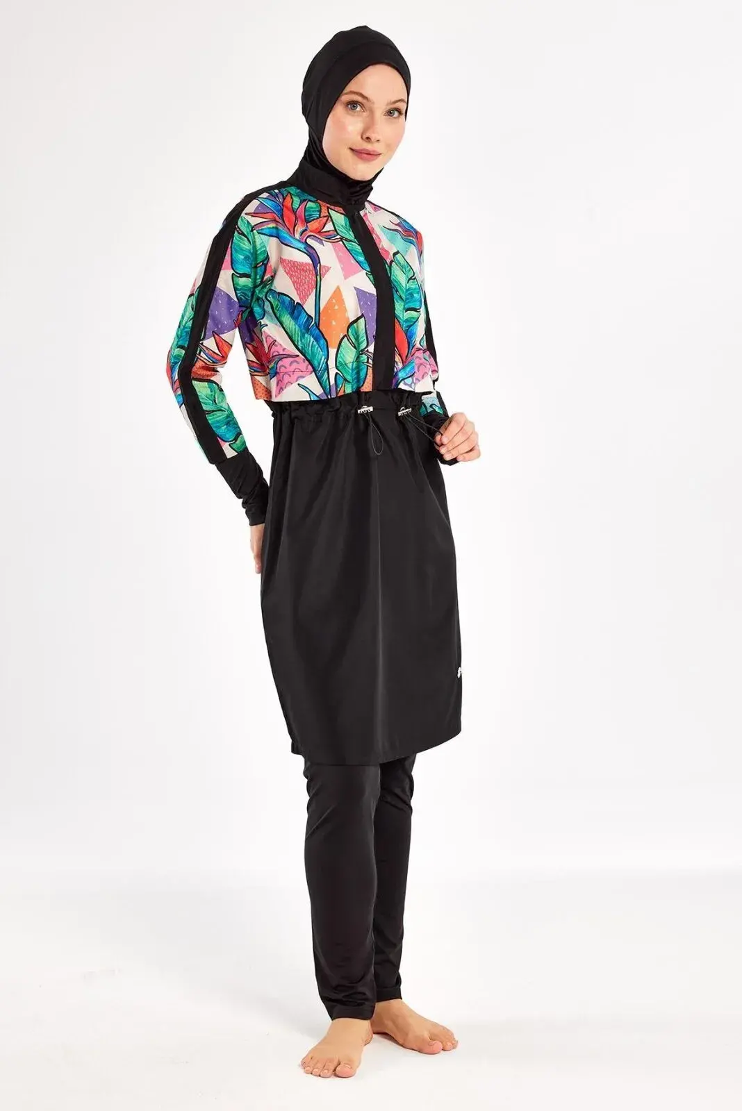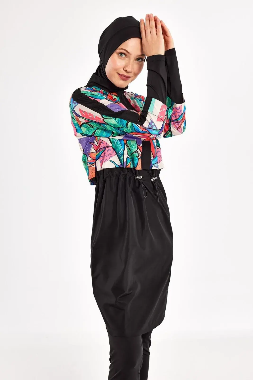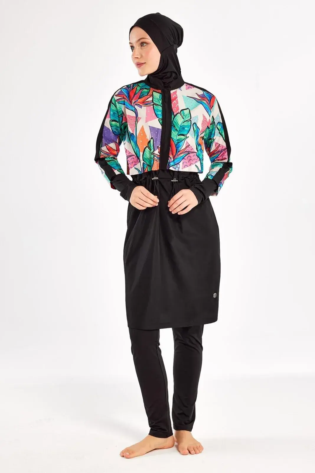 Sherry Uzun Kollu Tesettür Mayo, renkli ve enerjik tasarımıyla şıklığı ve rahatlığı bir arada sunuyor. Plajda ya da havuzda rahatça hareket etmenizi sağlayacak ve tarzınıza modern bir dokunuş katacaktır.