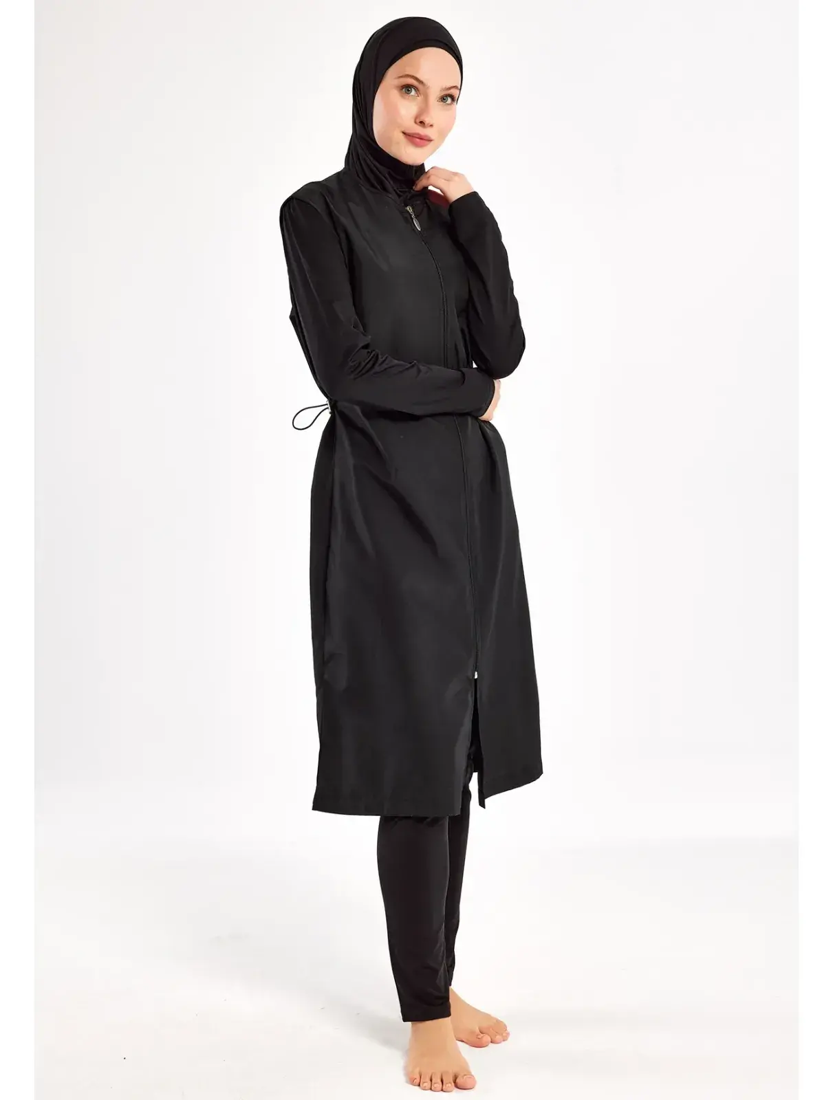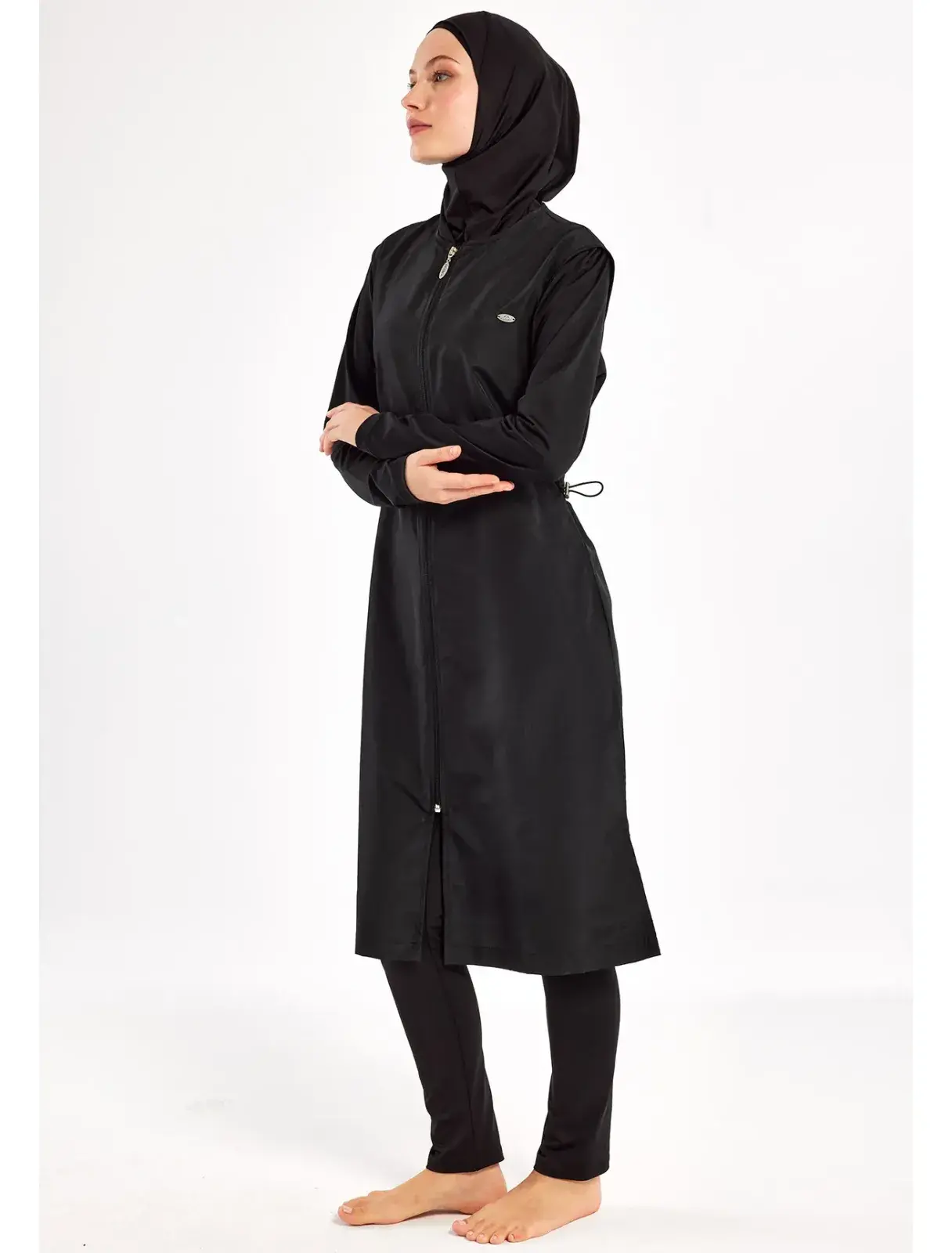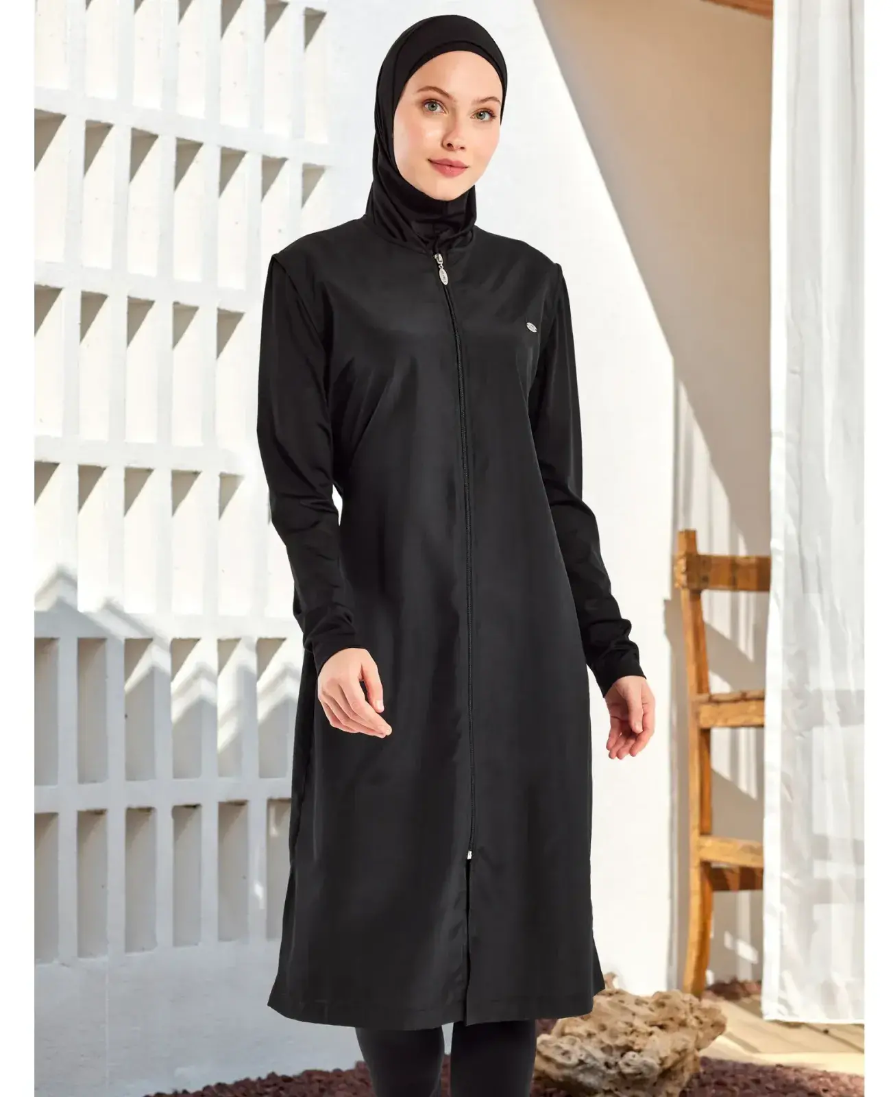 Tunik: Uzun kollu, esnek kumaş, bisiklet yaka, astarsız, fermuarlı