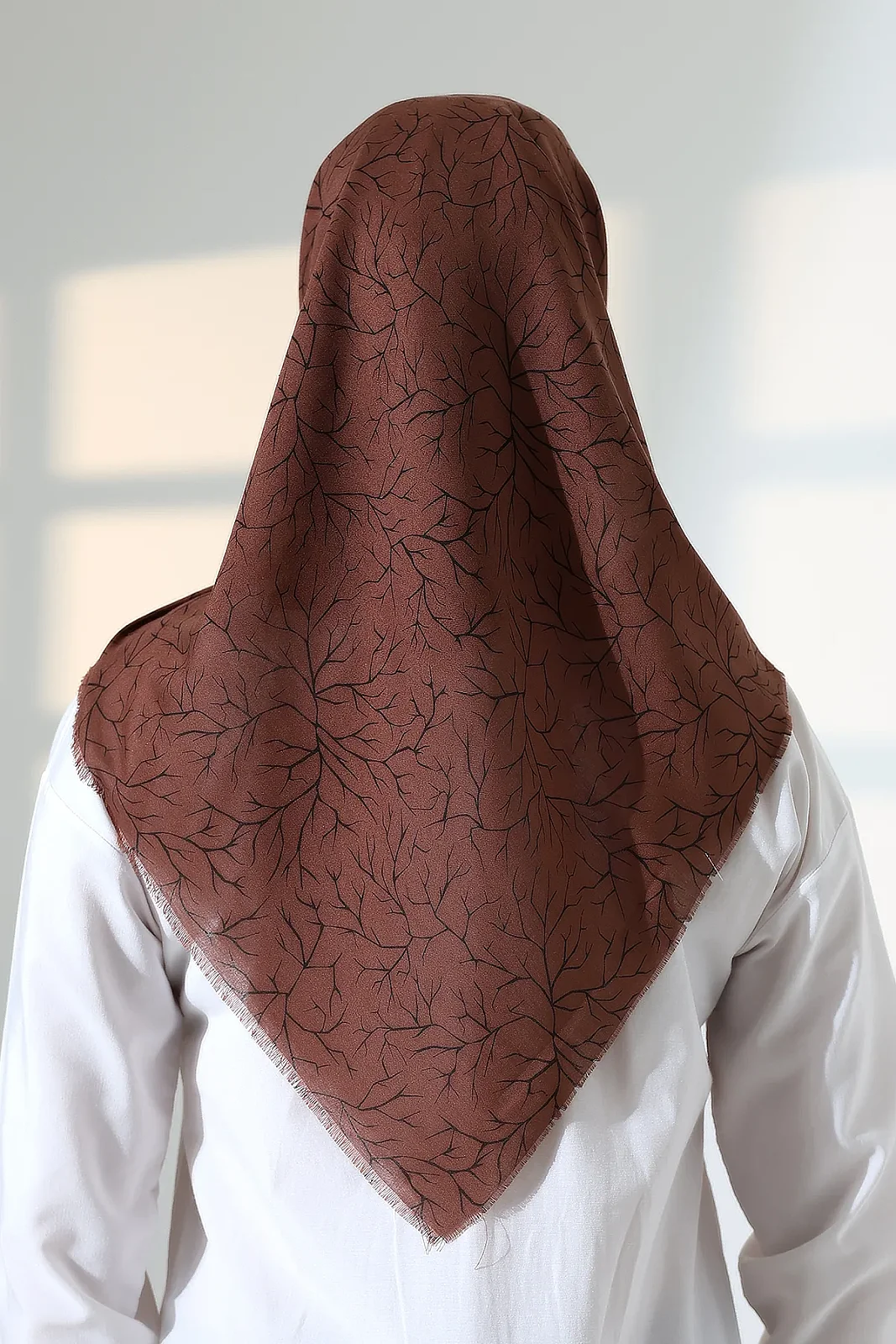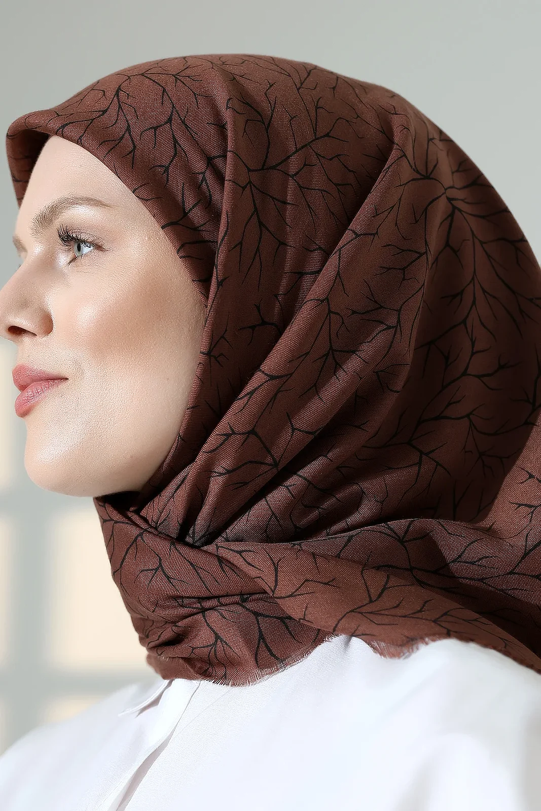 Günlük kullanımda rahatlığından ödün vermeyenler için tasarlanan Ağaç Desenli Pamuklu Flamlı Yazma, şıklığı ve fonksiyonelliği bir araya getiriyor. Modern ağaç dalları figürleriyle süslenmiş bu başörtüsü, doğal görünümüyle her kombininize estetik bir dokunuş katar.