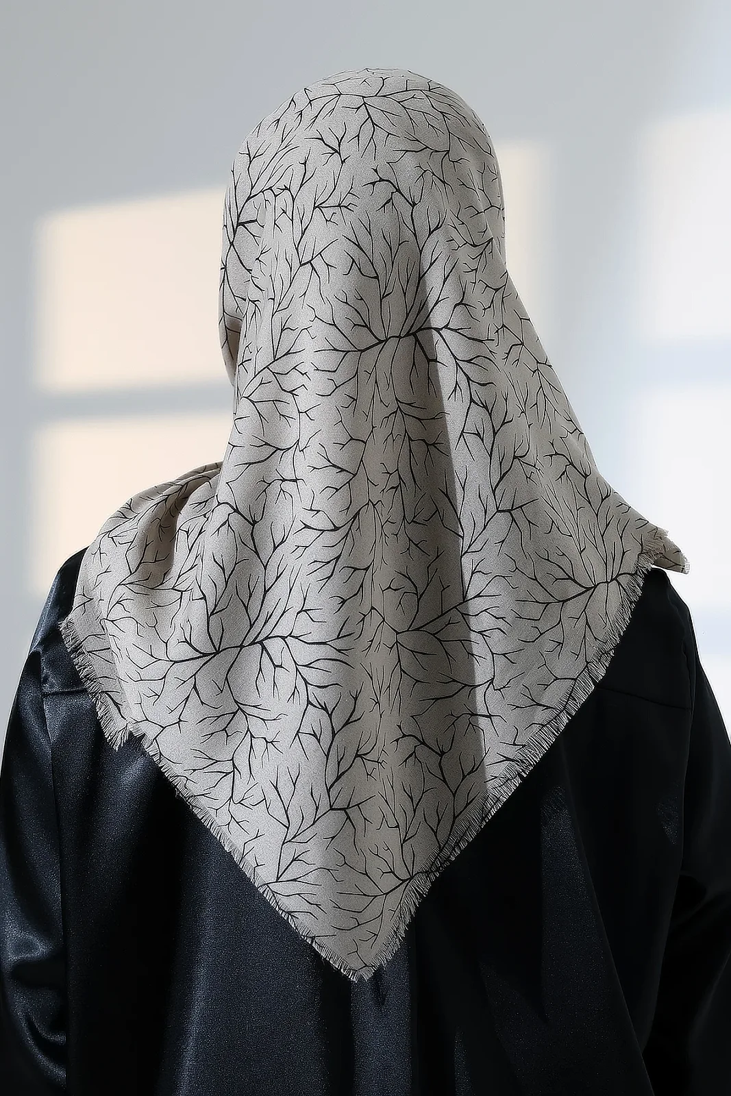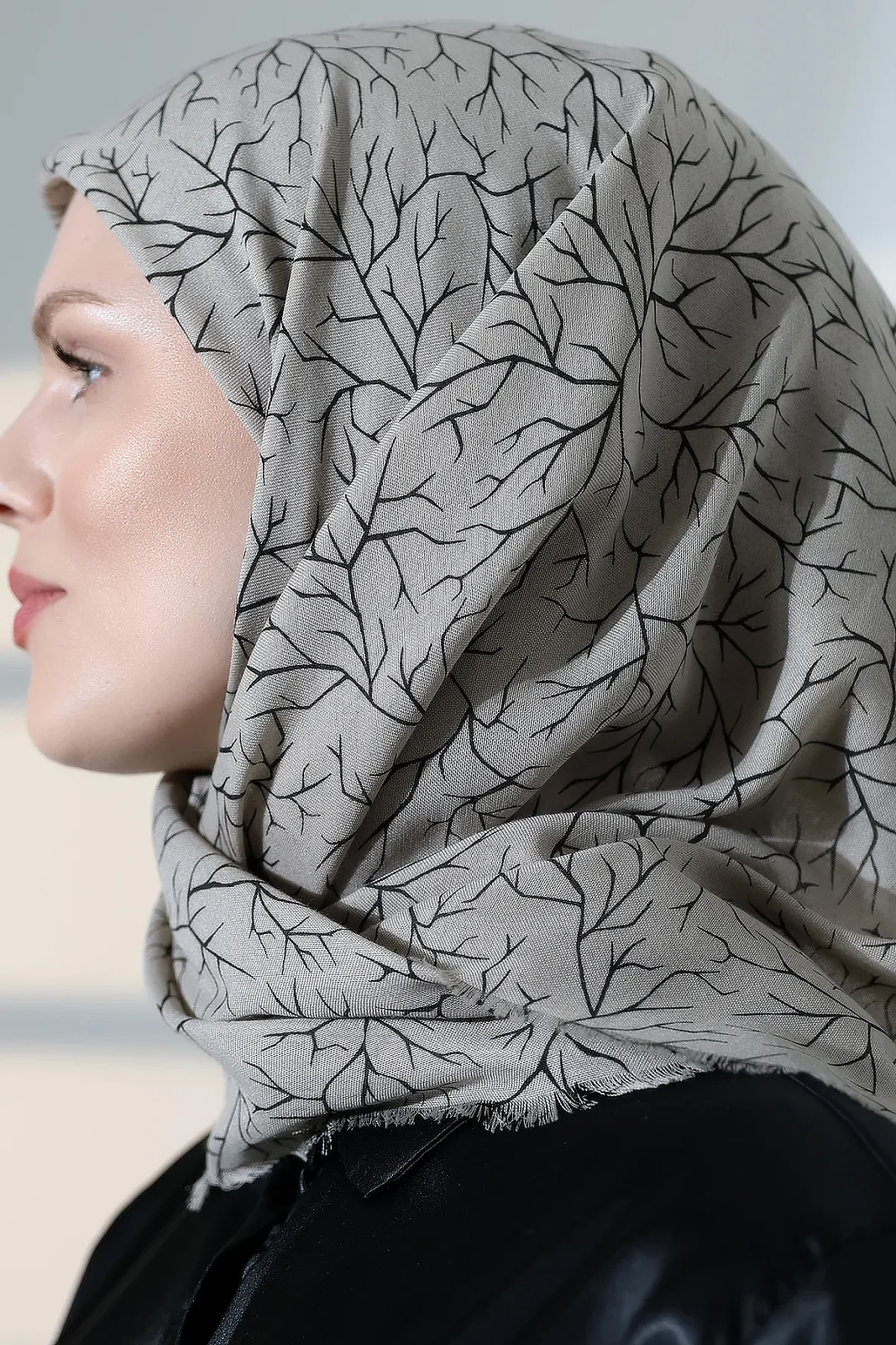 Ağaç Desenli Pamuklu Eşarp, Yumuşak Dokulu Flamlı Yazma Başörtüsü - Vizon
