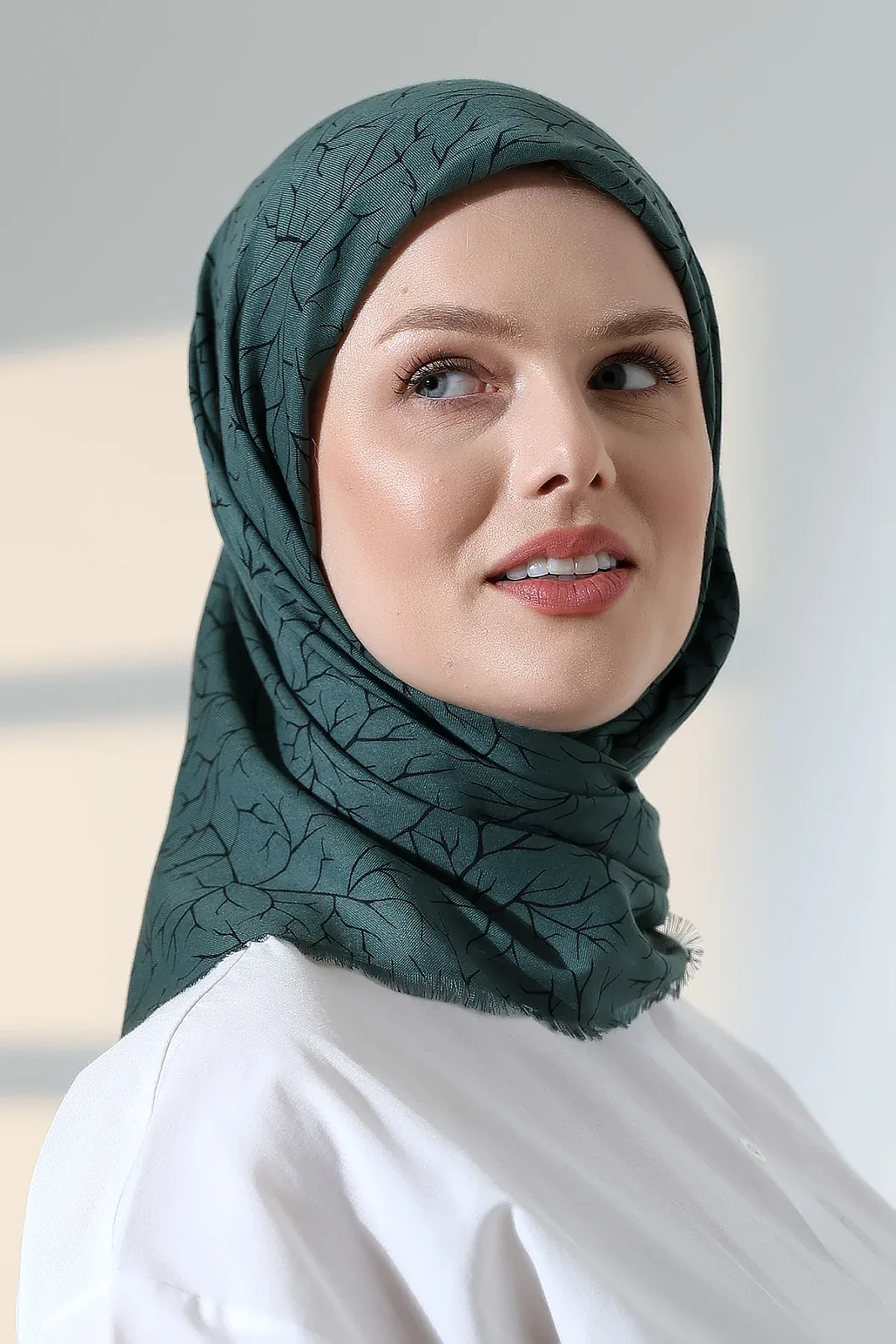 Günlük kullanımda rahatlığından ödün vermeyenler için tasarlanan Ağaç Desenli Pamuklu Flamlı Yazma, şıklığı ve fonksiyonelliği bir araya getiriyor. Modern ağaç dalları figürleriyle süslenmiş bu başörtüsü, doğal görünümüyle her kombininize estetik bir dokunuş katar.